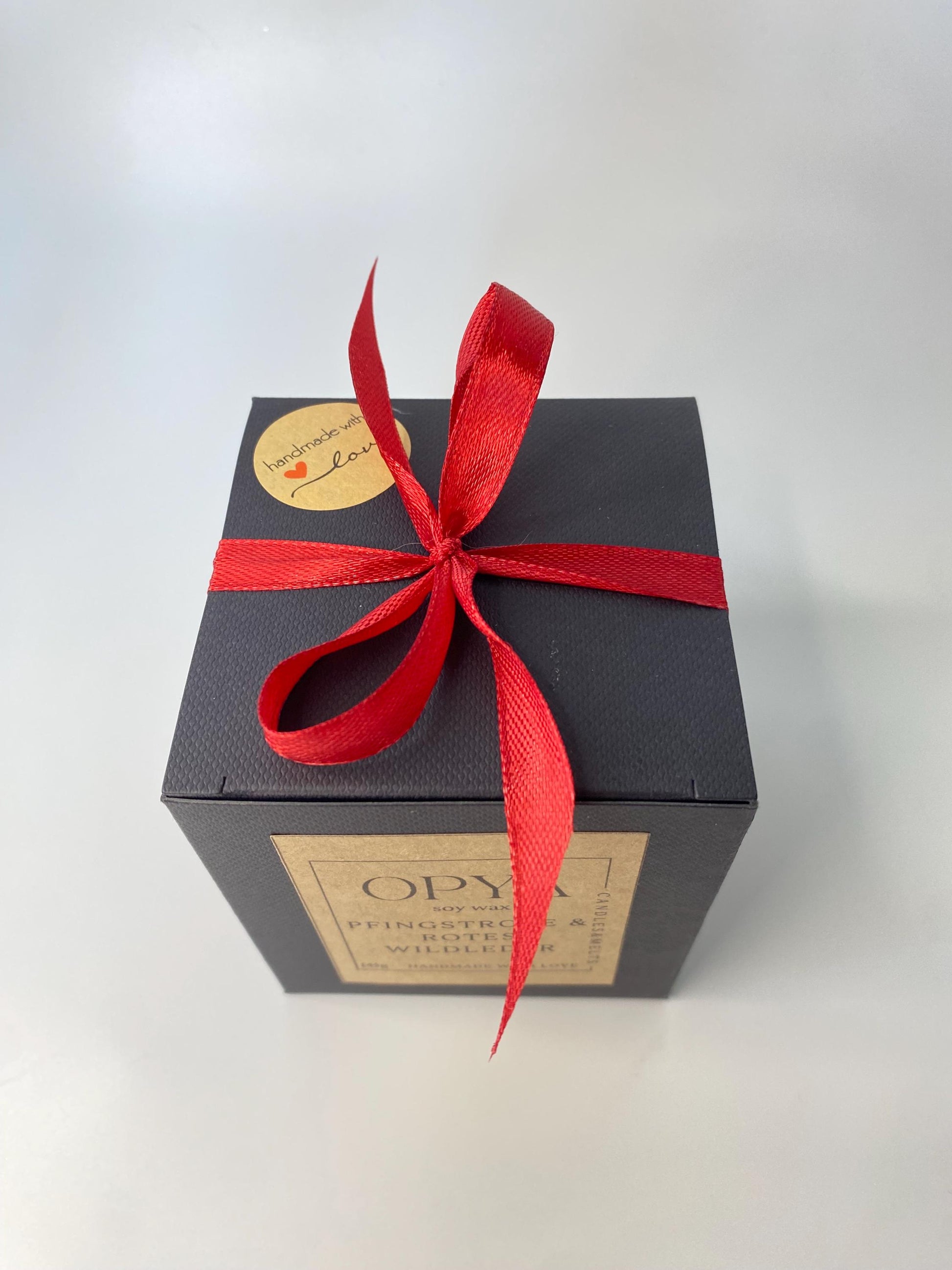 Duftkerze im Glas, " Pfingstrose & Rotes Wildleder " 145 Gramm