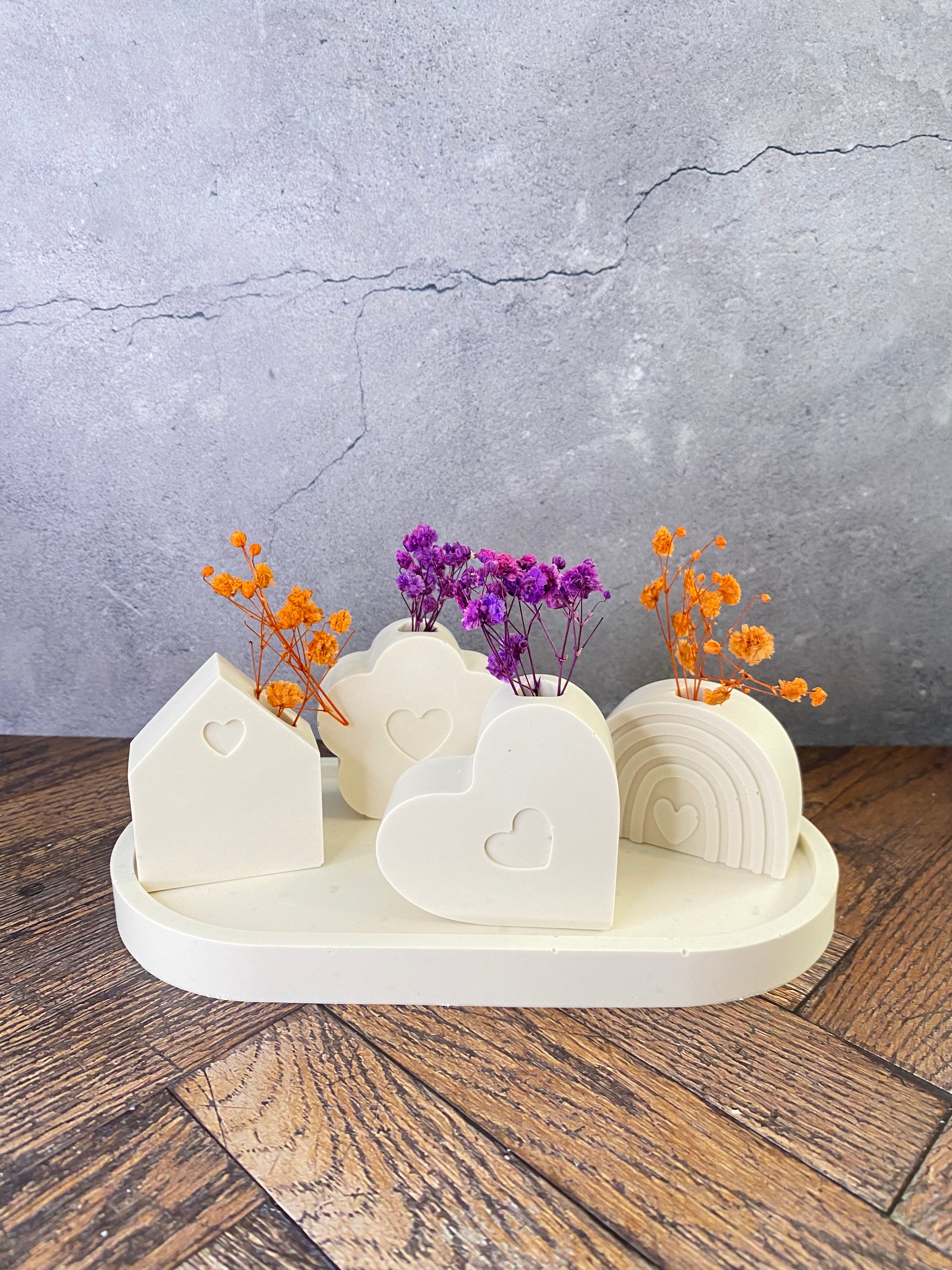 Bring Liebe, Charme und Natürlichkeit in dein Zuhause – mit unserem handgefertigten Minivasen-Set aus Jesin, einem umweltfreundlichen, wasserbasierten Material, das frei von schädlichen Chemikalien ist.