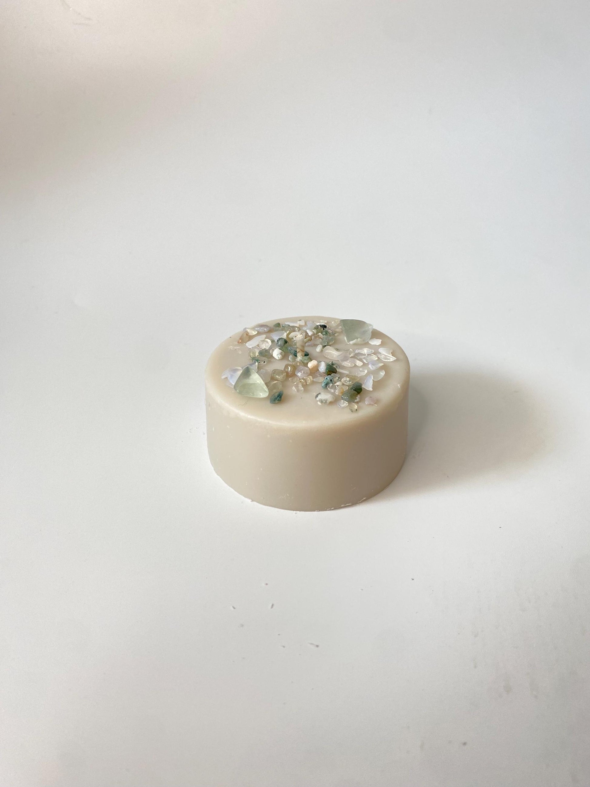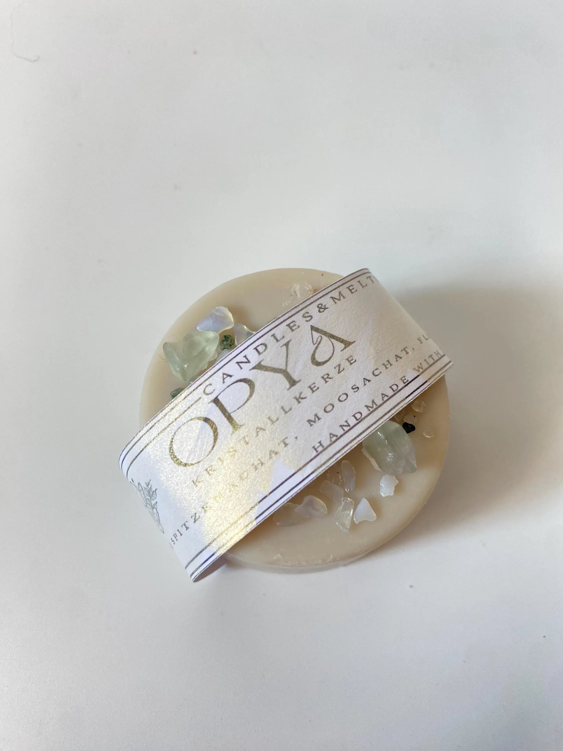 Kristall-Duft-Ritualkerze - mit Moosachat & Blauem Spitzenachat ,Dark Musk,Handgegossen