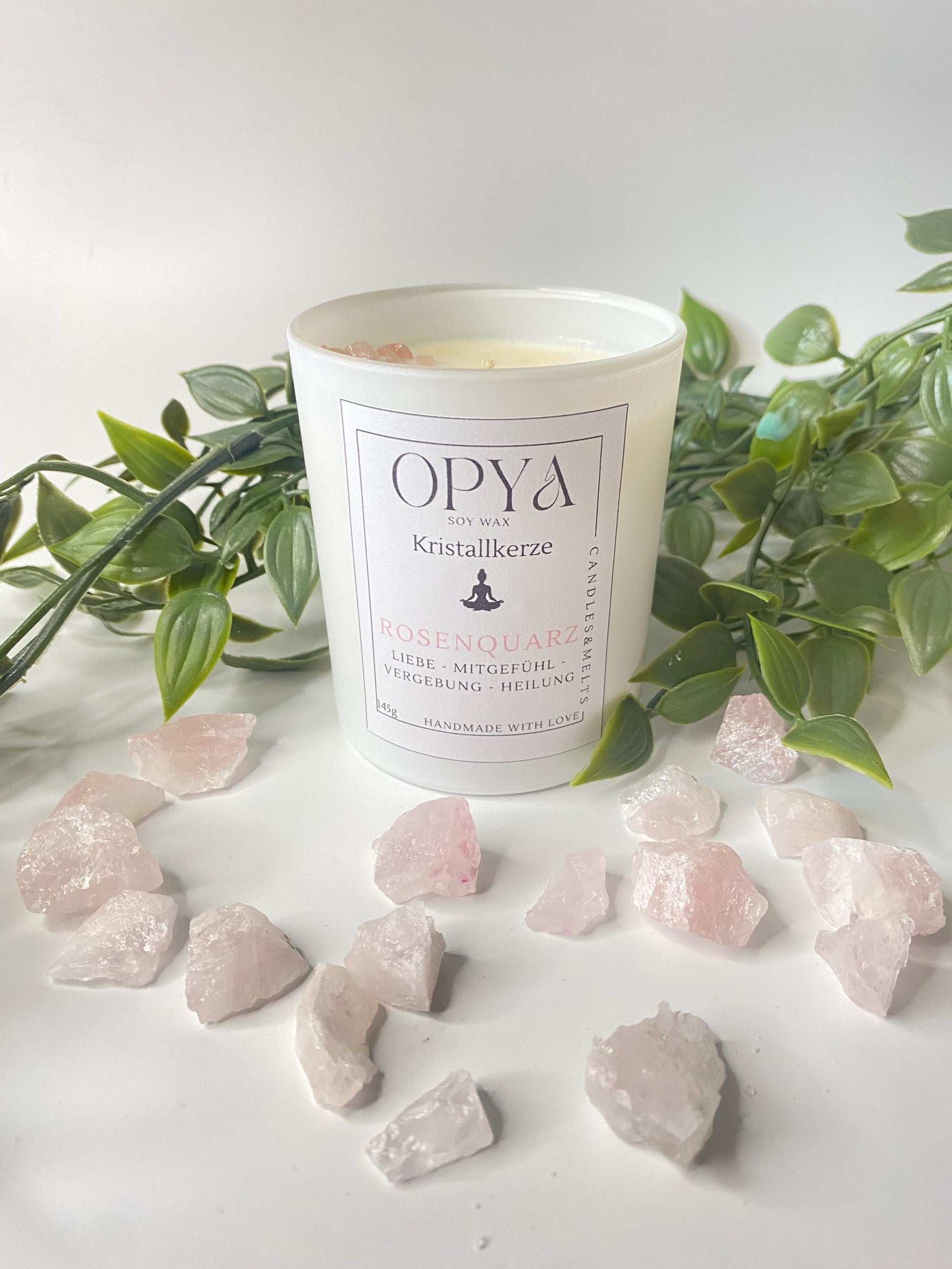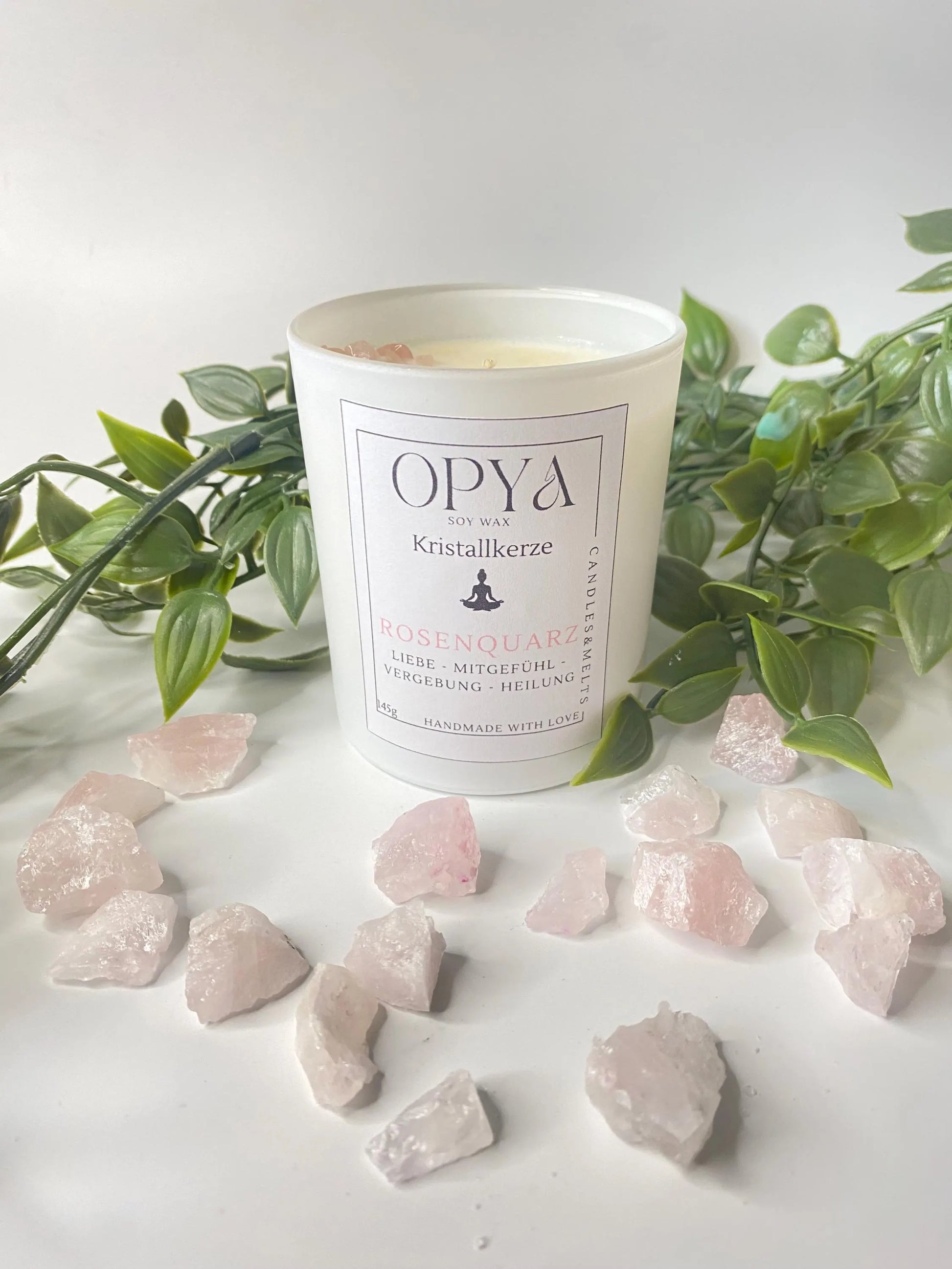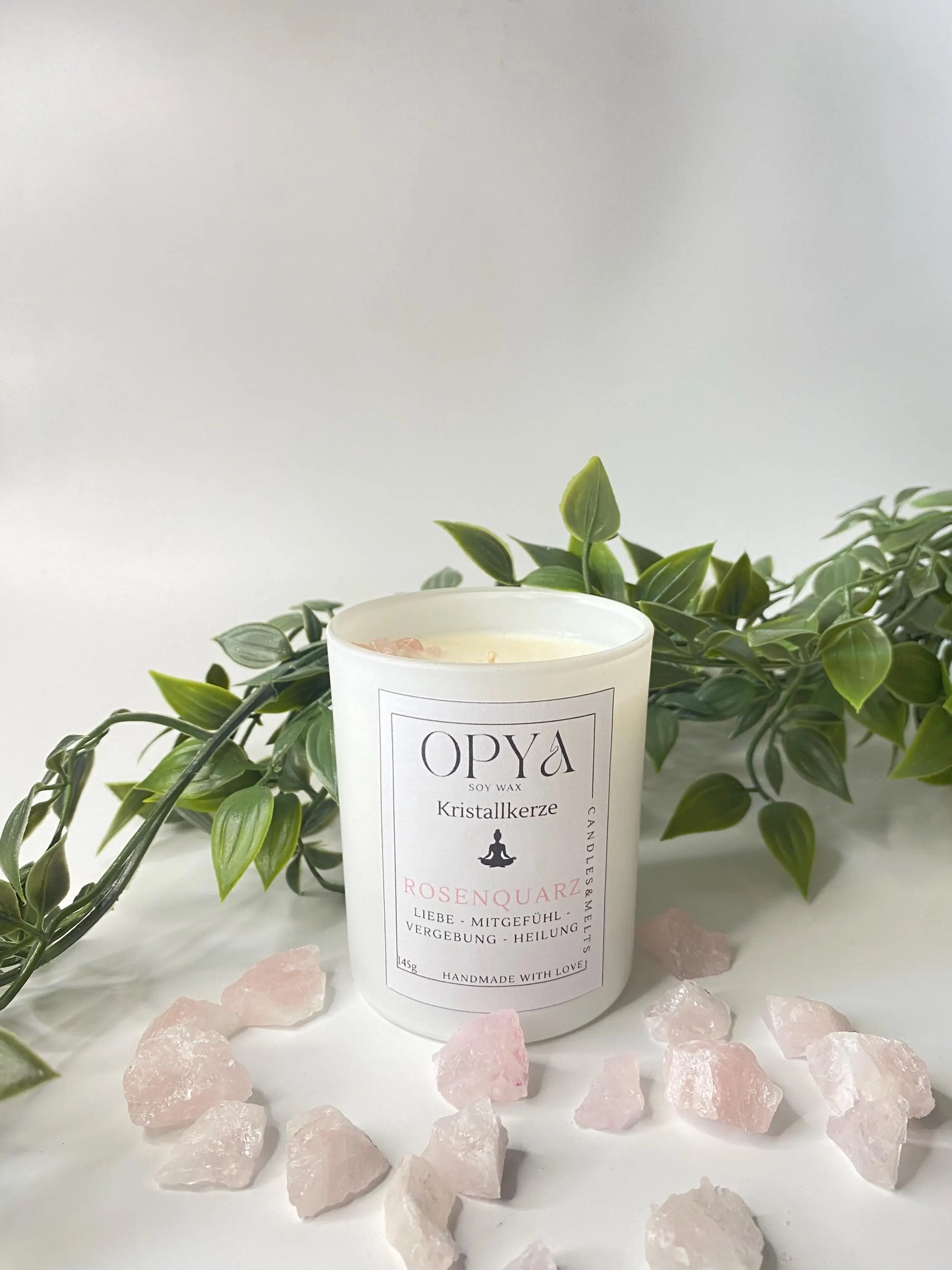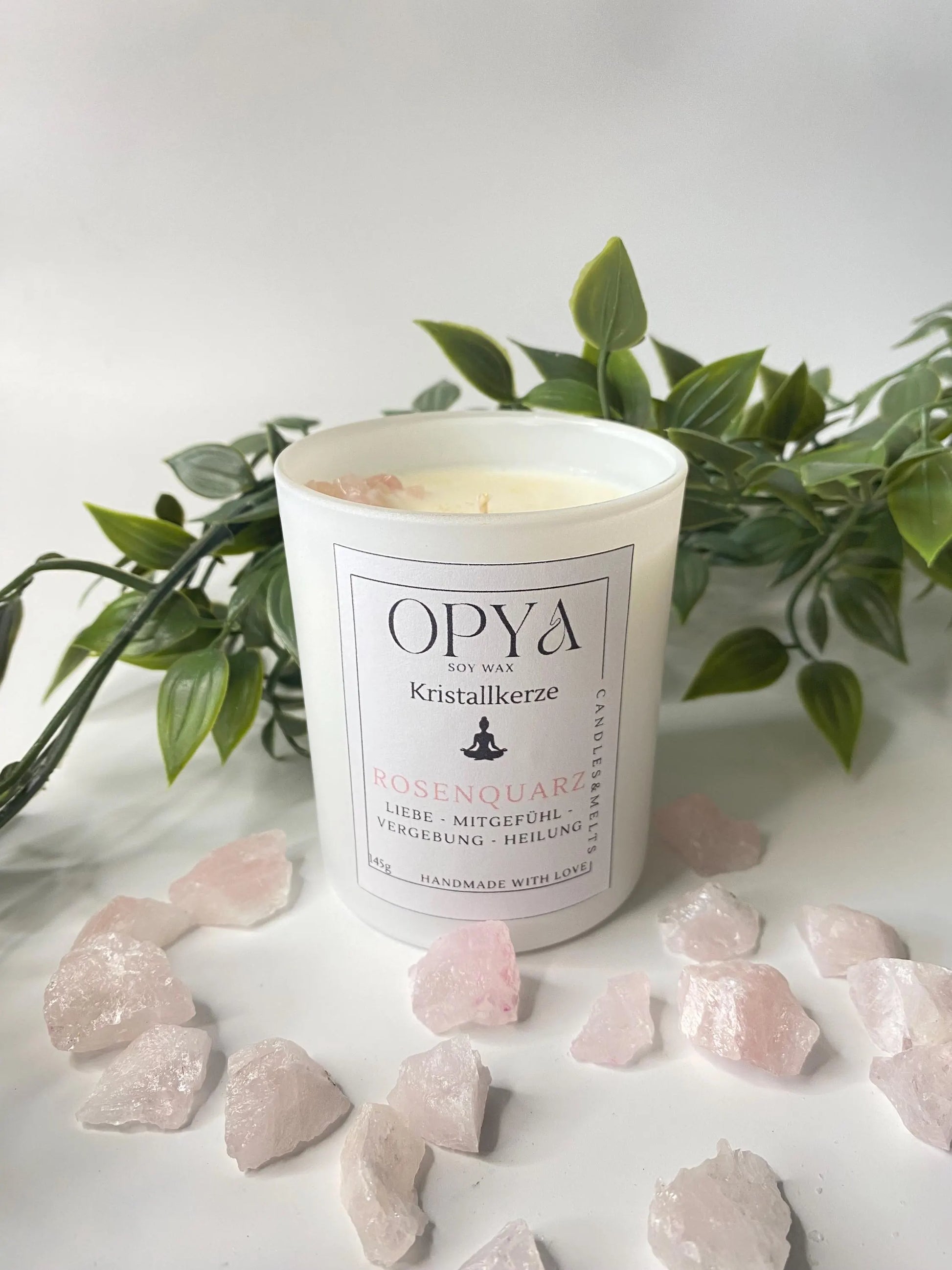 🕯️ Kristallkerze mit Rosenquarz – in verschiedenen Düften – 145g