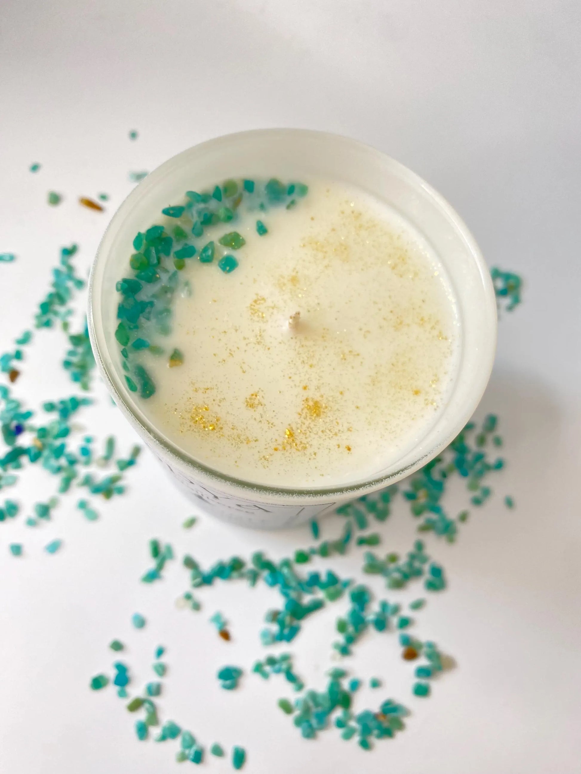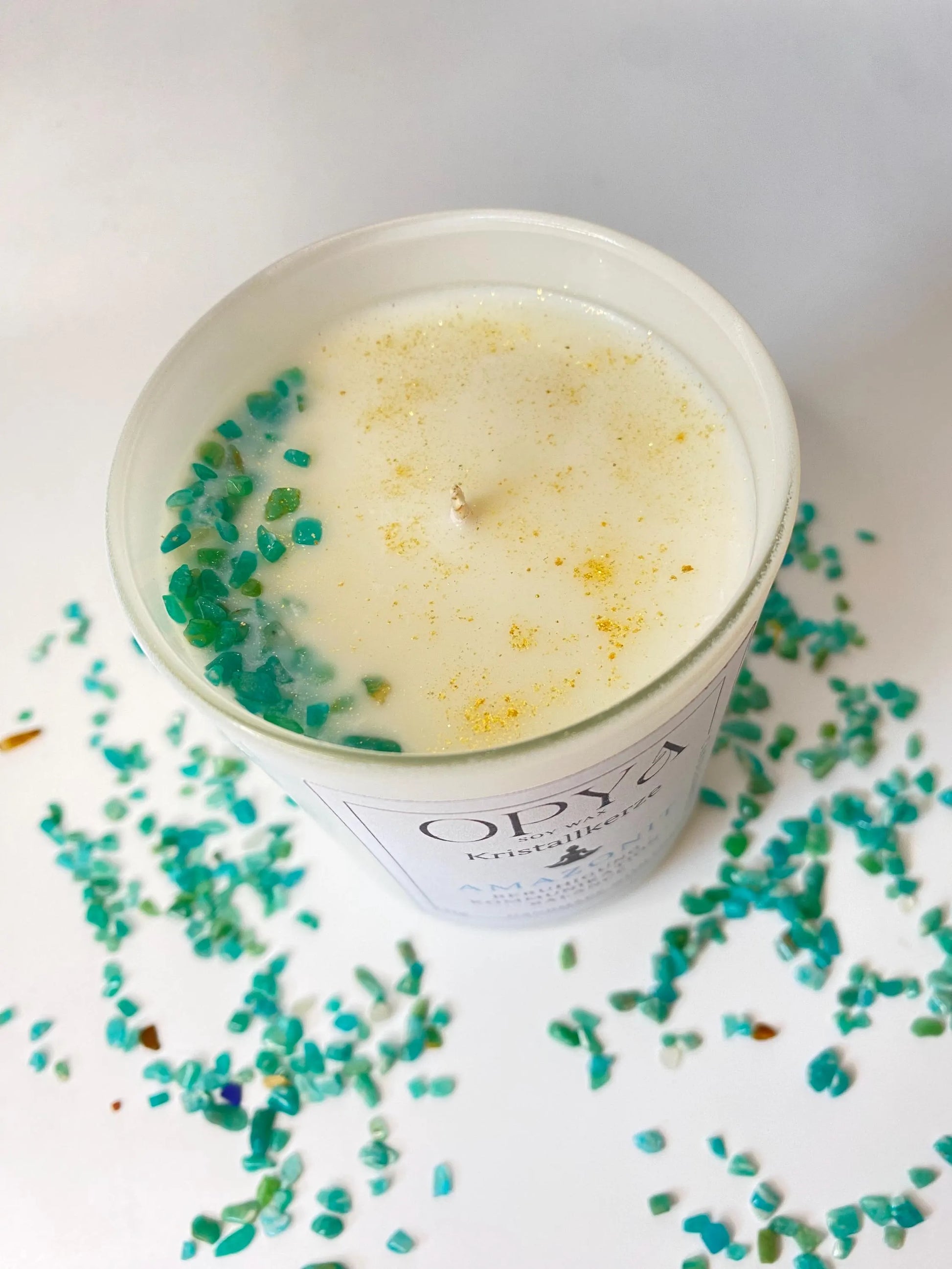 Kristall-Duft-Kerze mit Amazonit-Kristallen