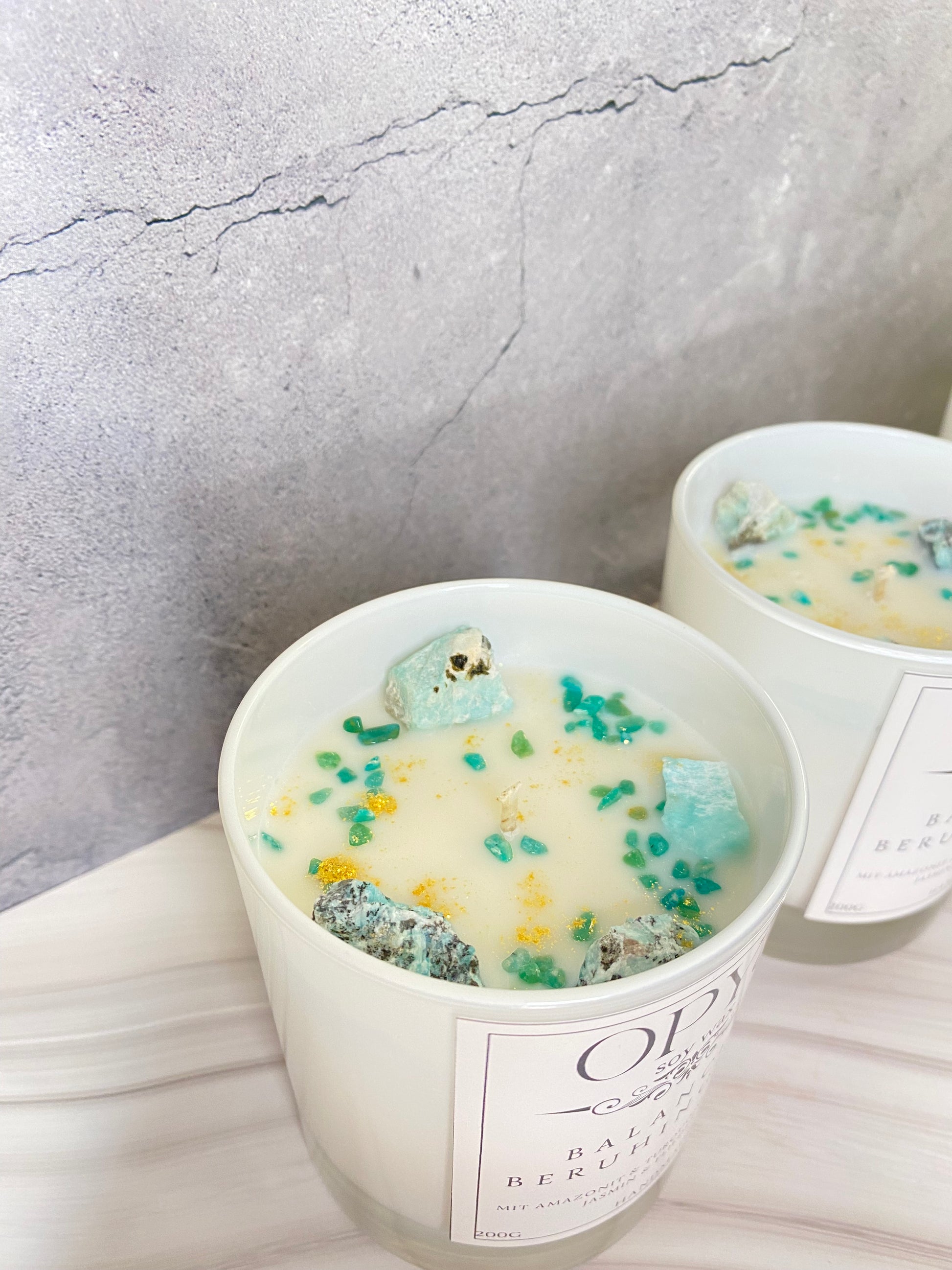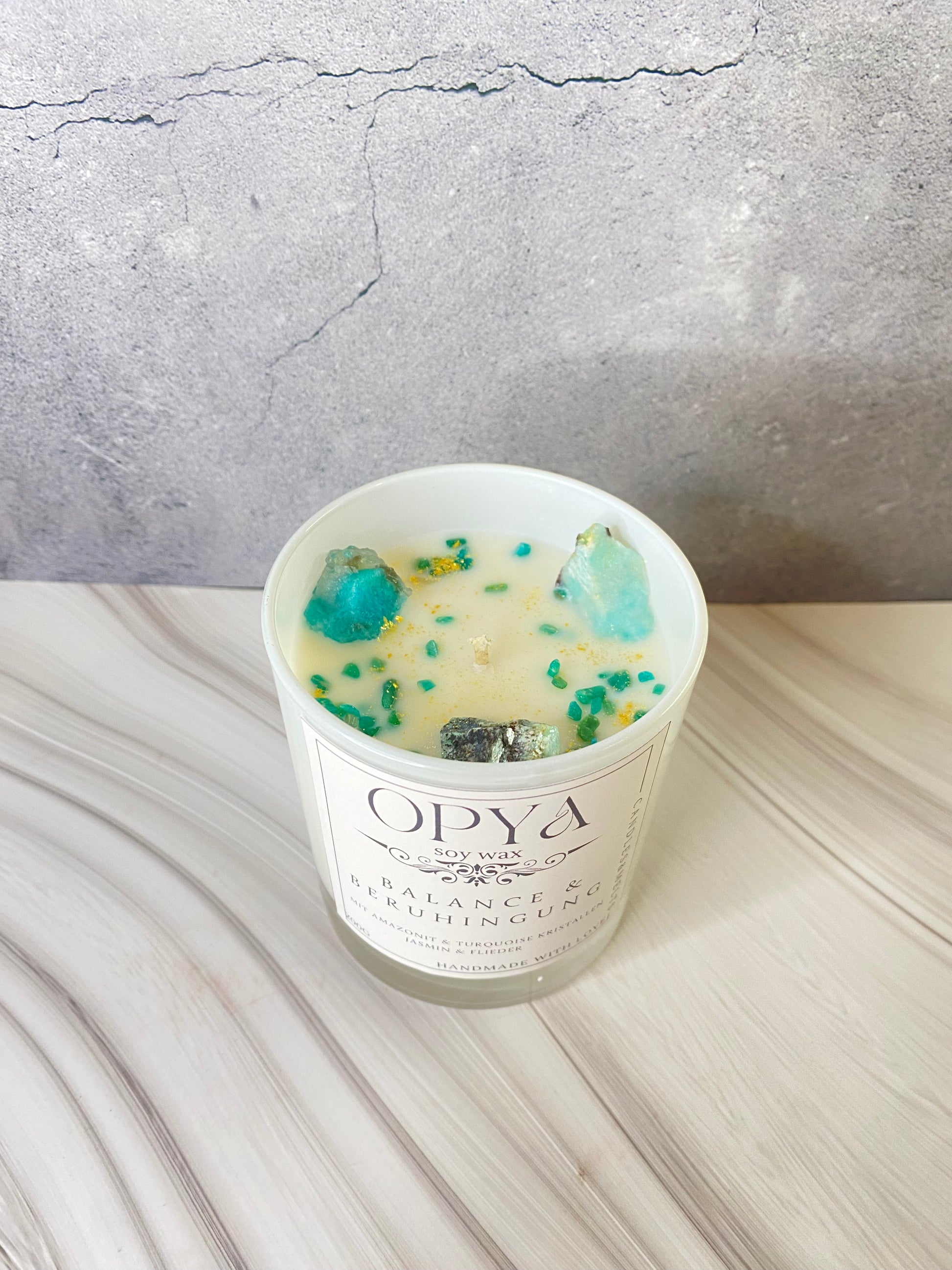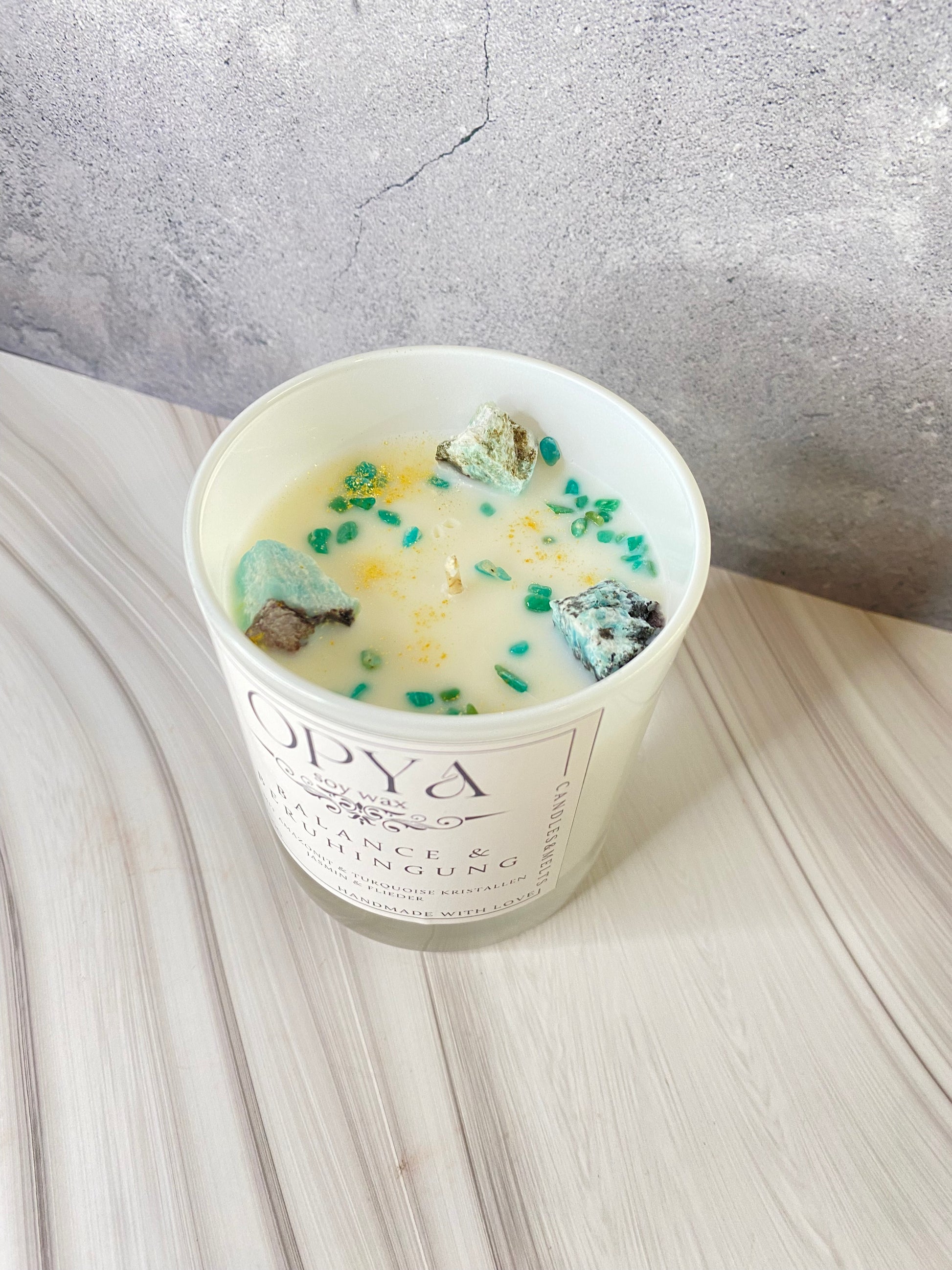 ✨ Kristallkerze „Balance & Beruhigung“ – Amazonit & Türkis ✨