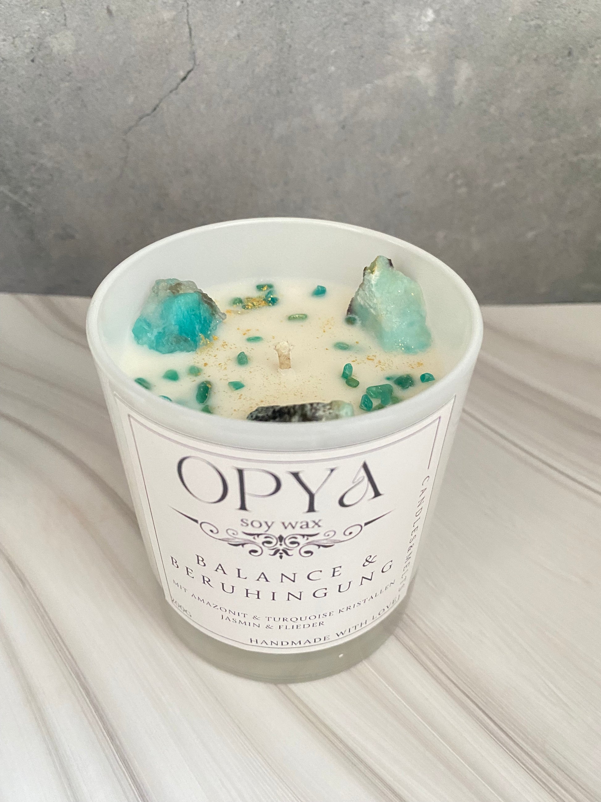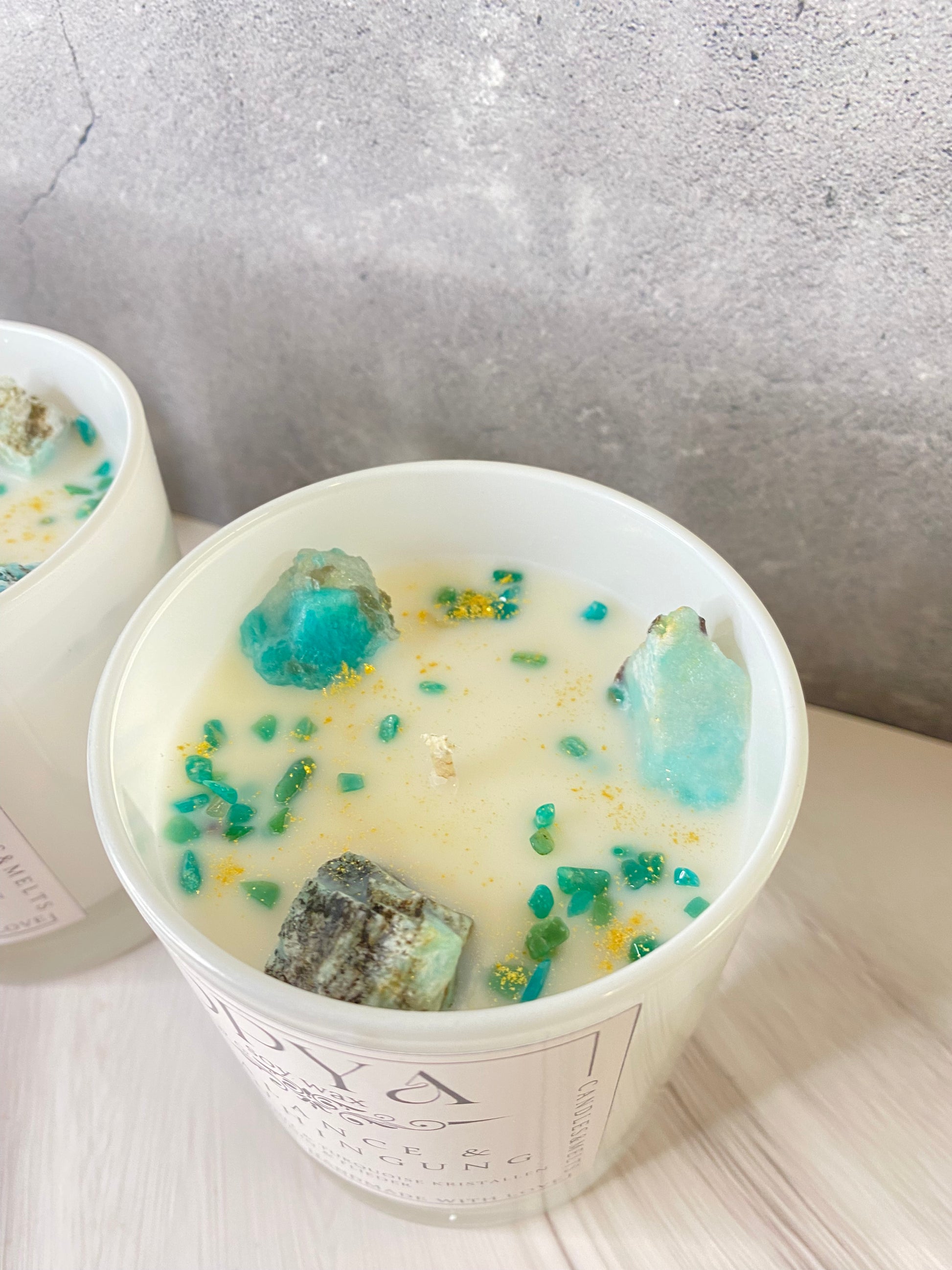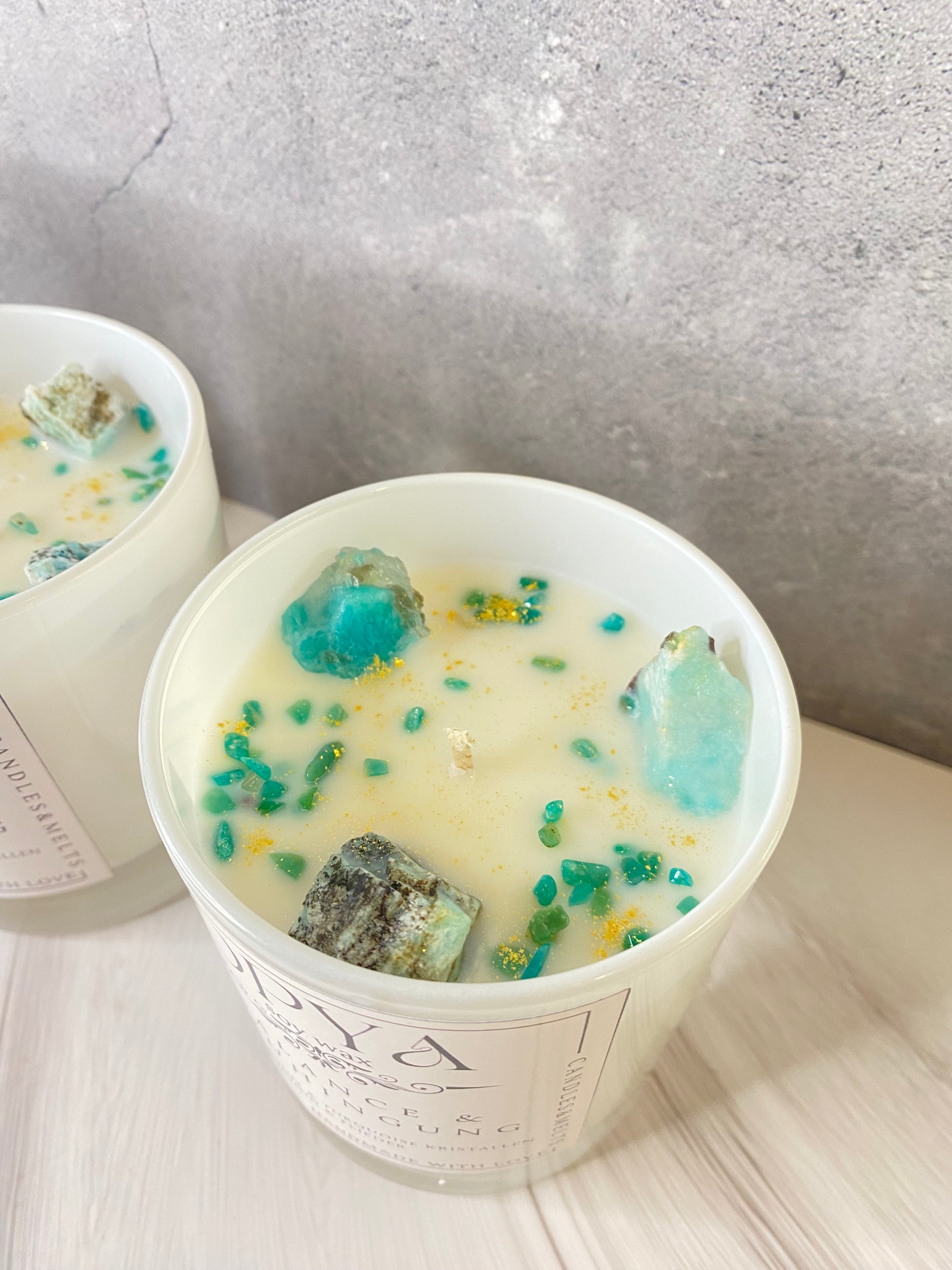 ✨ Kristallkerze „Balance & Beruhigung“ – Amazonit & Türkis ✨