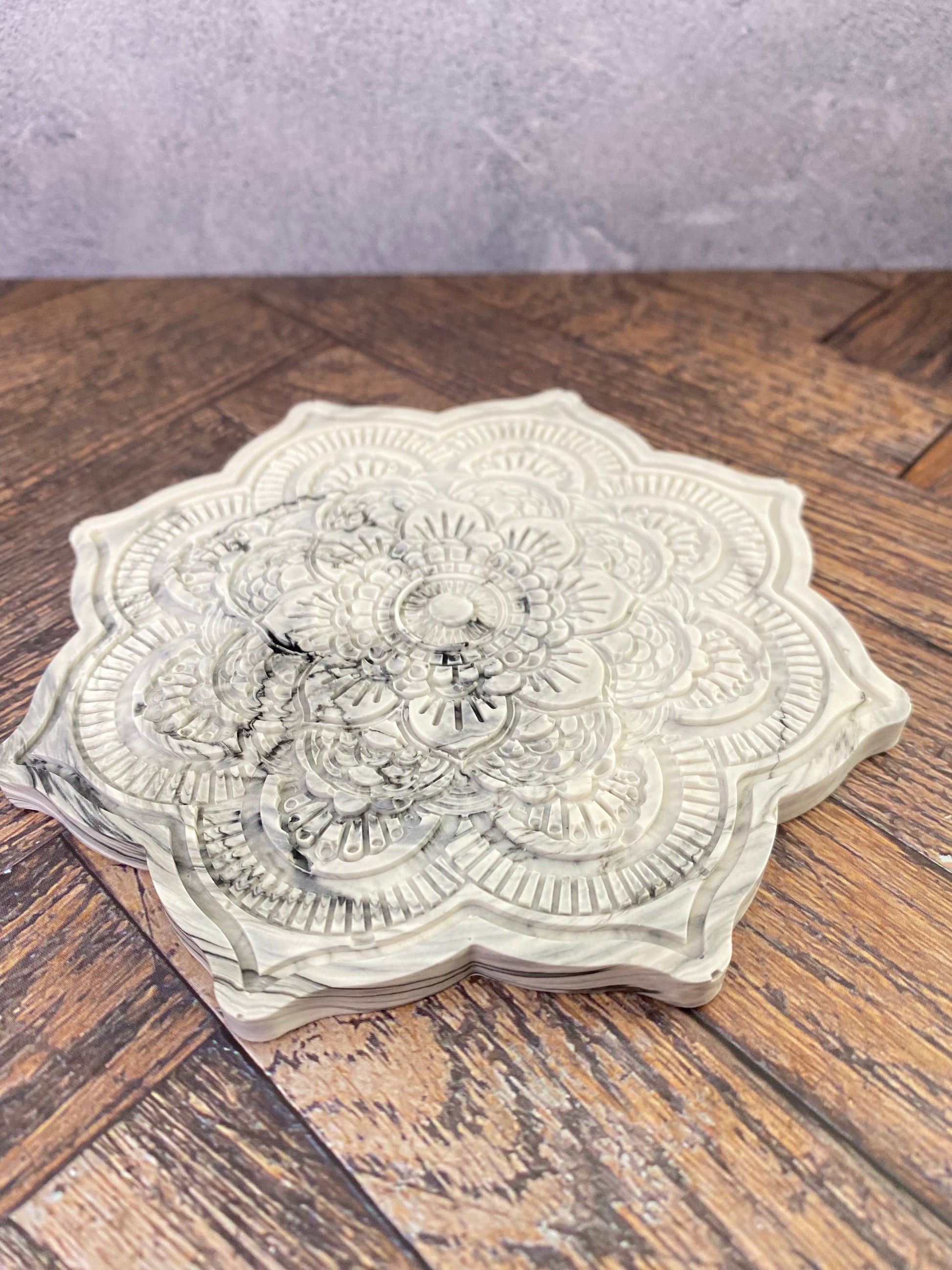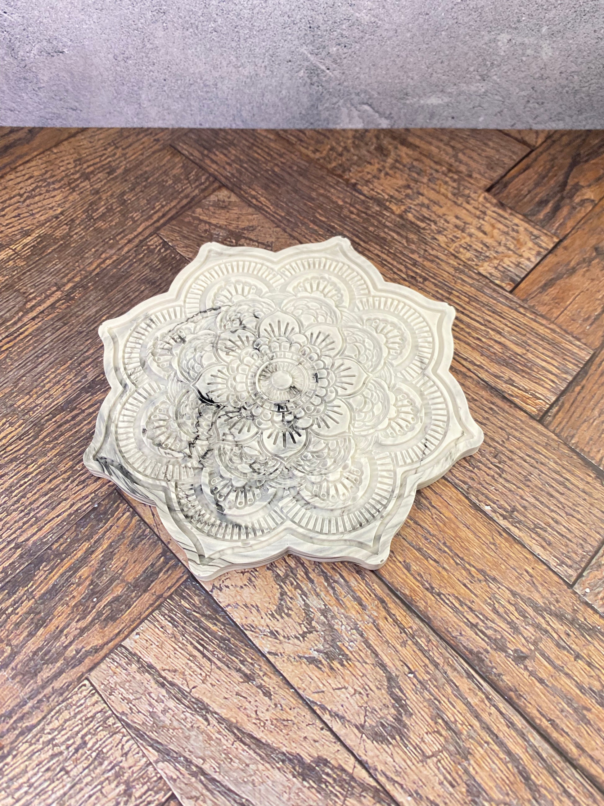 Bringe Harmonie und Stil in dein Zuhause mit unserem handgefertigten Mandala Untersetzer aus umweltfreundlichem Jesin . Jeder Untersetzer wird mit Liebe von Hand gegossen und ist somit ein echtes Unikat – mit feinen Farbnuancen und einem wunderschönen Mandala-Muster, das Ruhe und Balance ausstrahlt.
