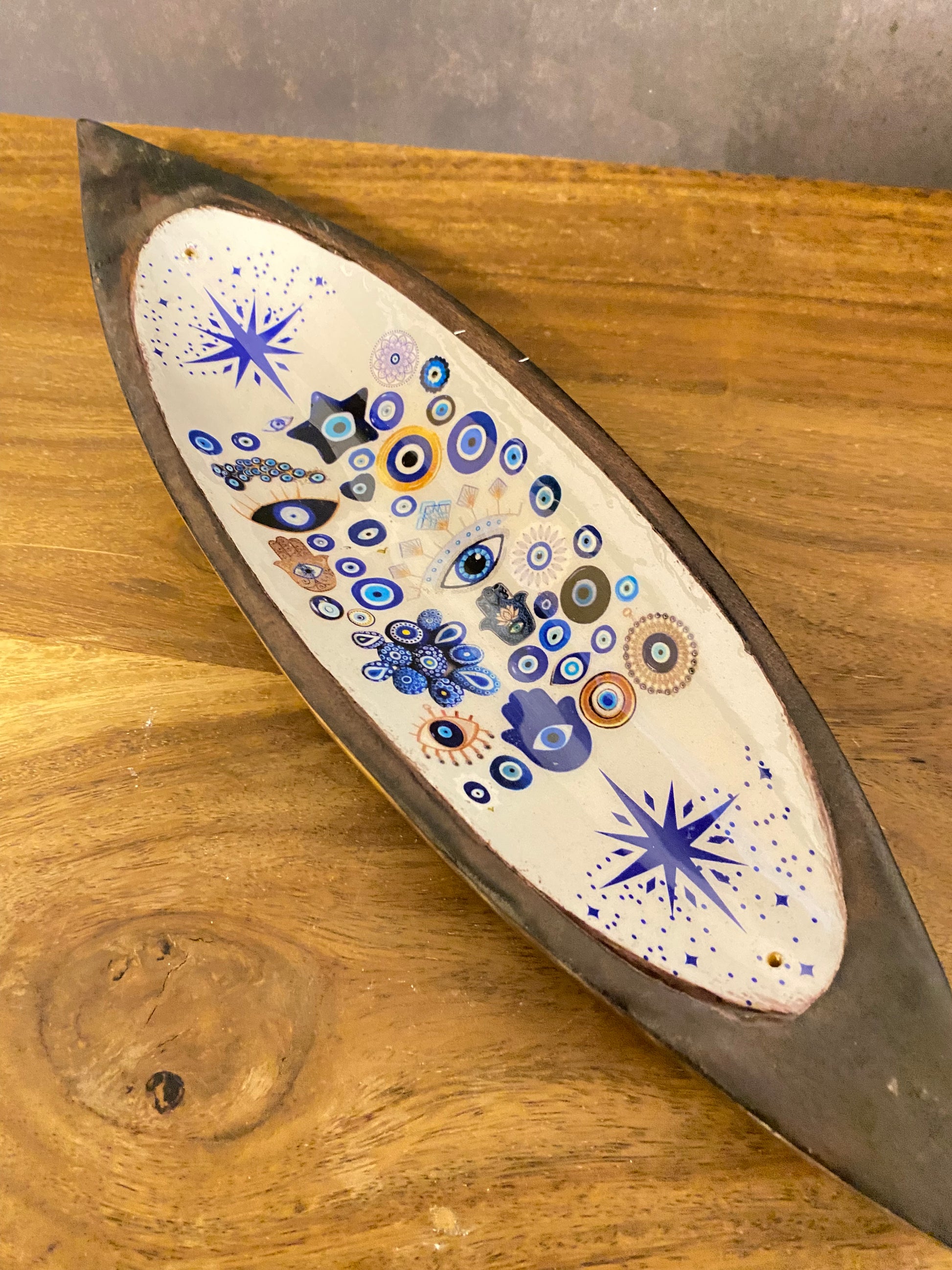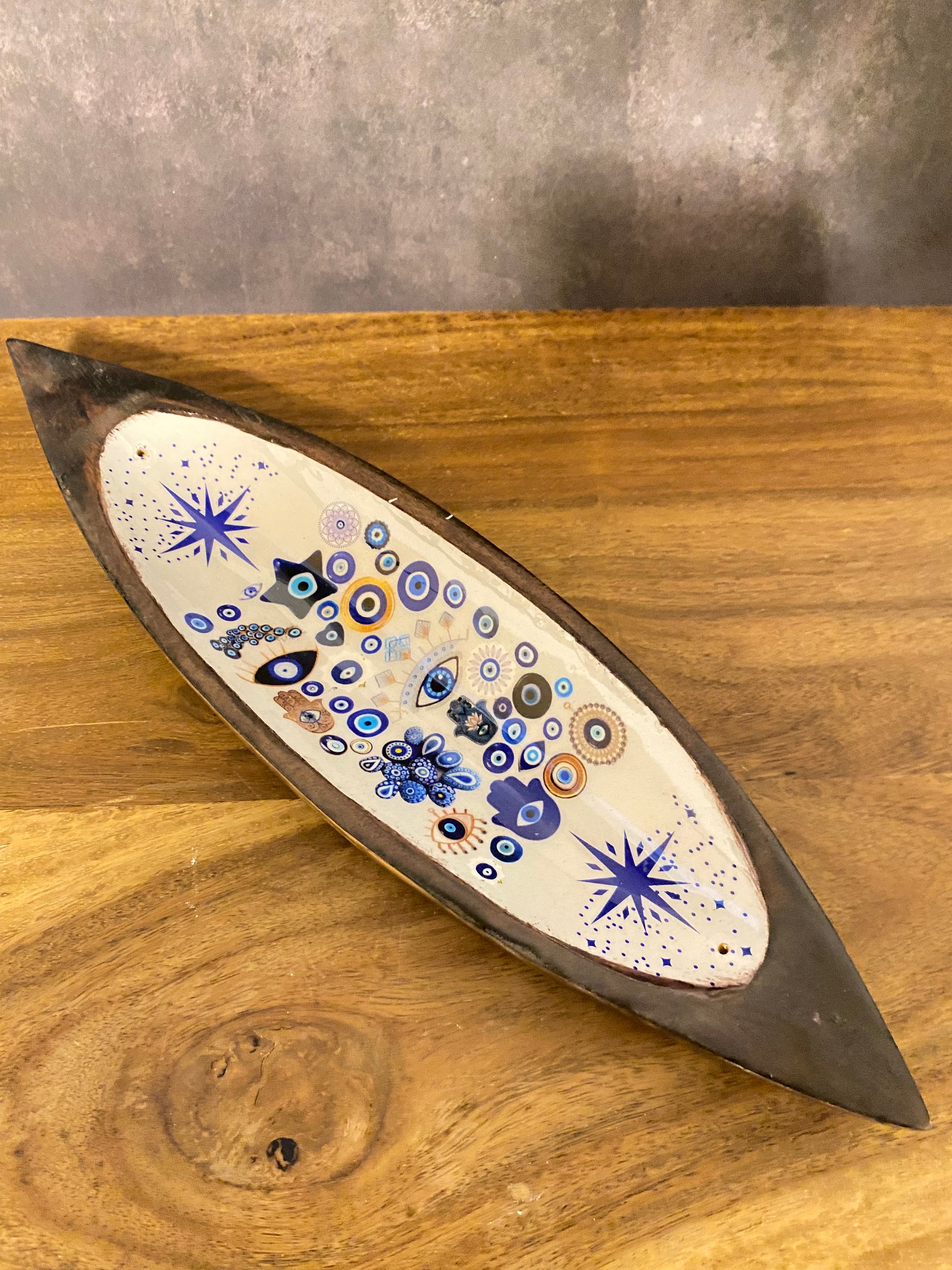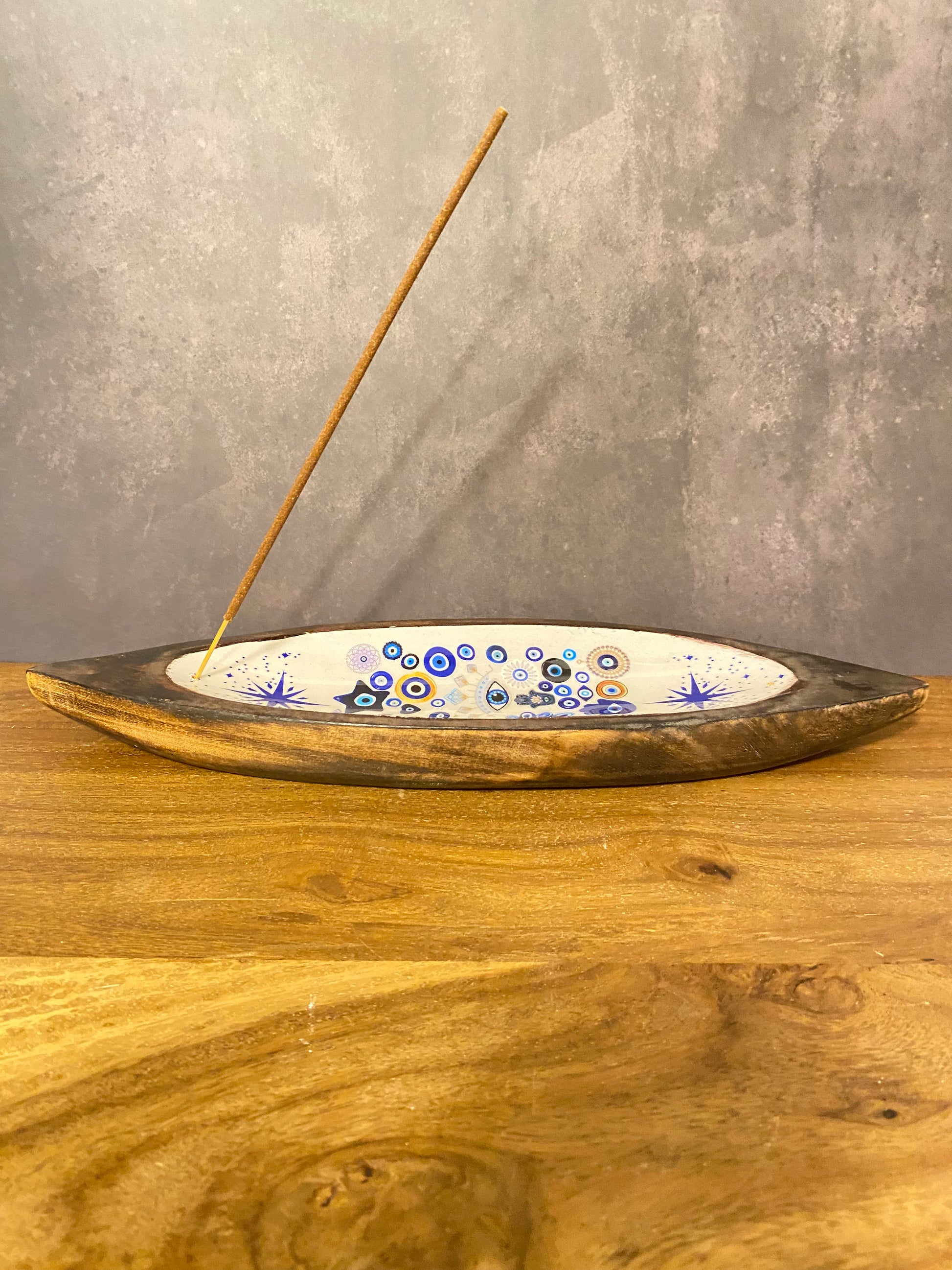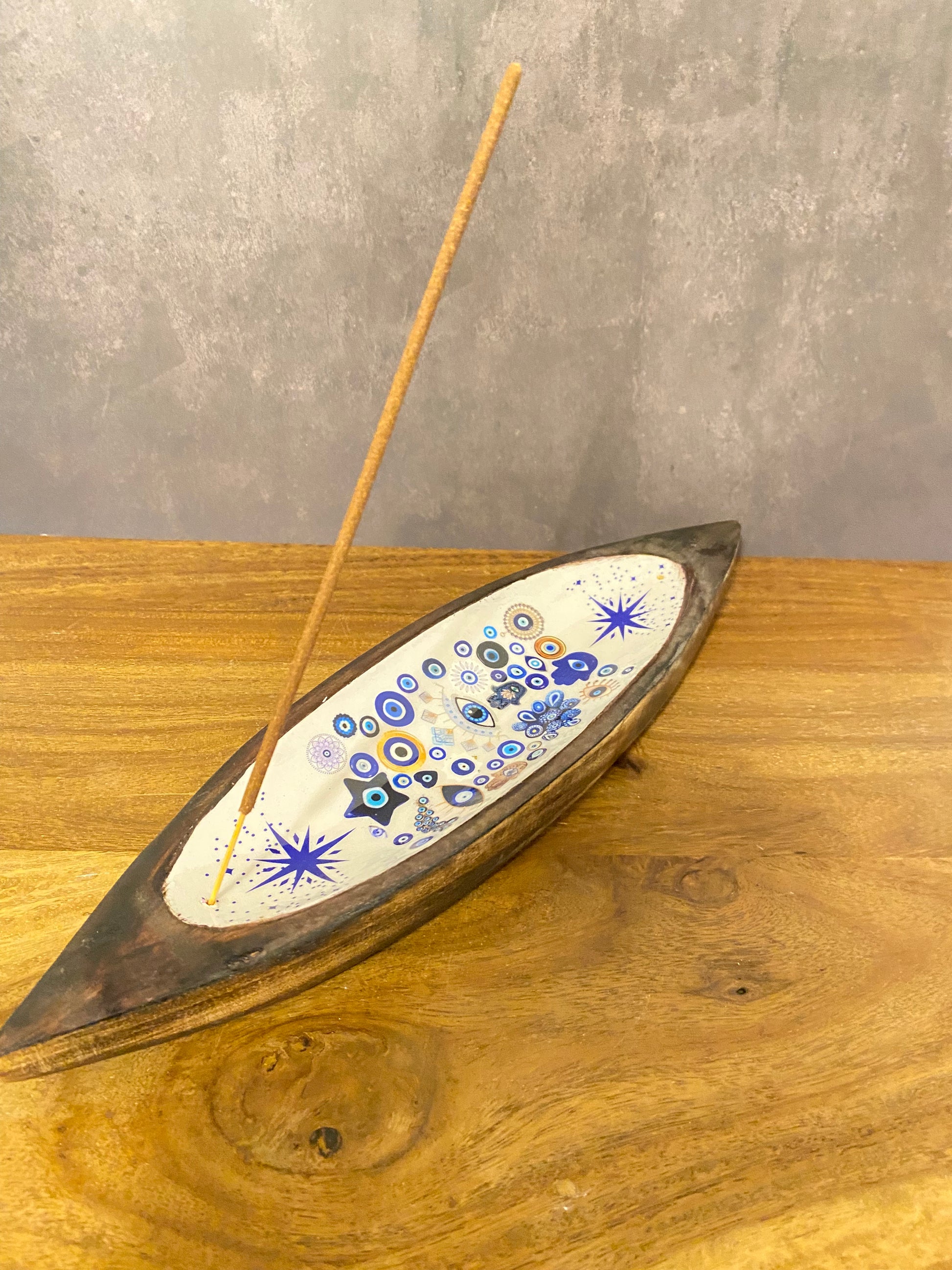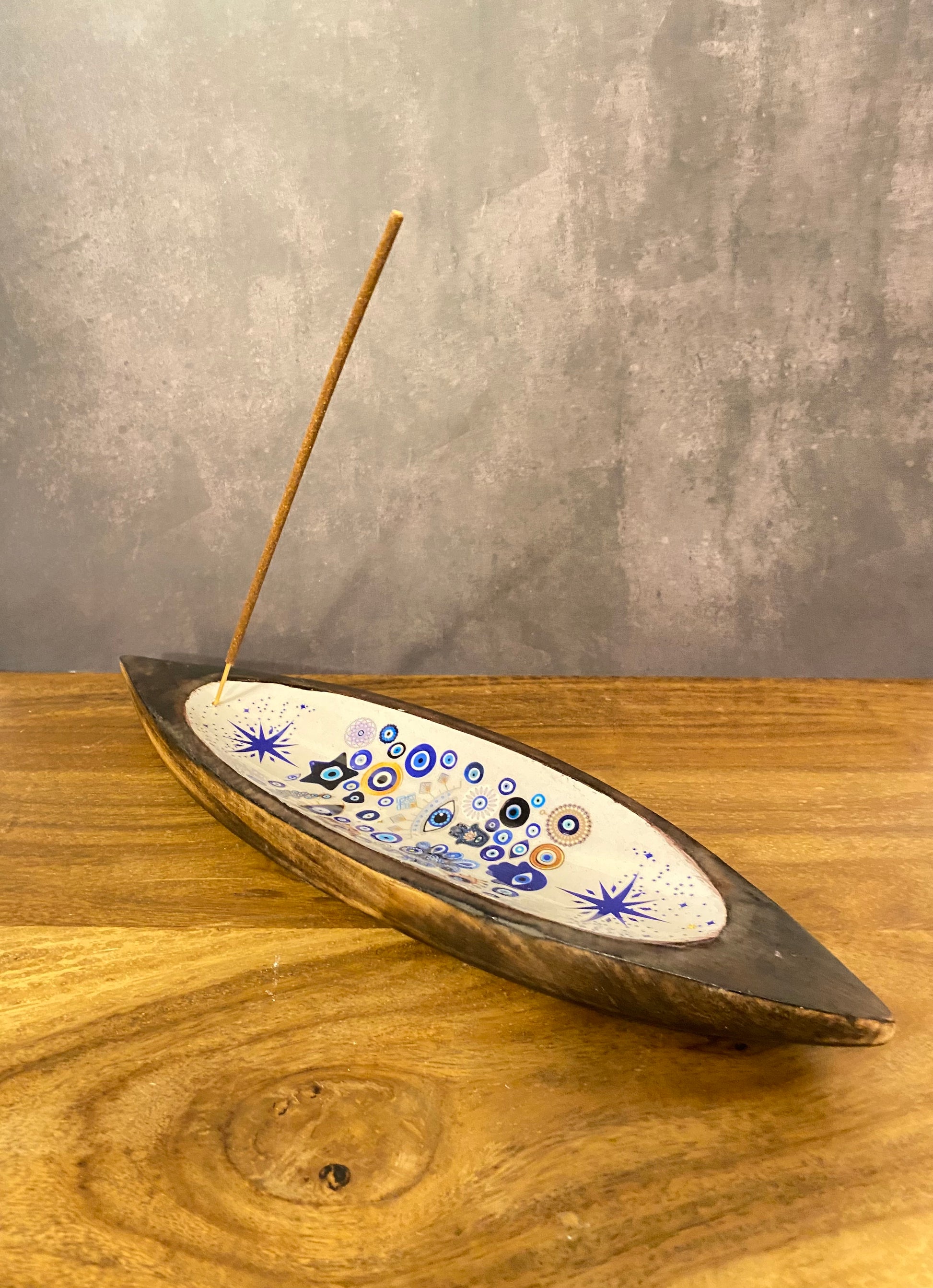 Bringe Schutz, Harmonie und gute Energie in dein Zuhause mit unserem Räucherstäbchenhalter „Böser Blick“.