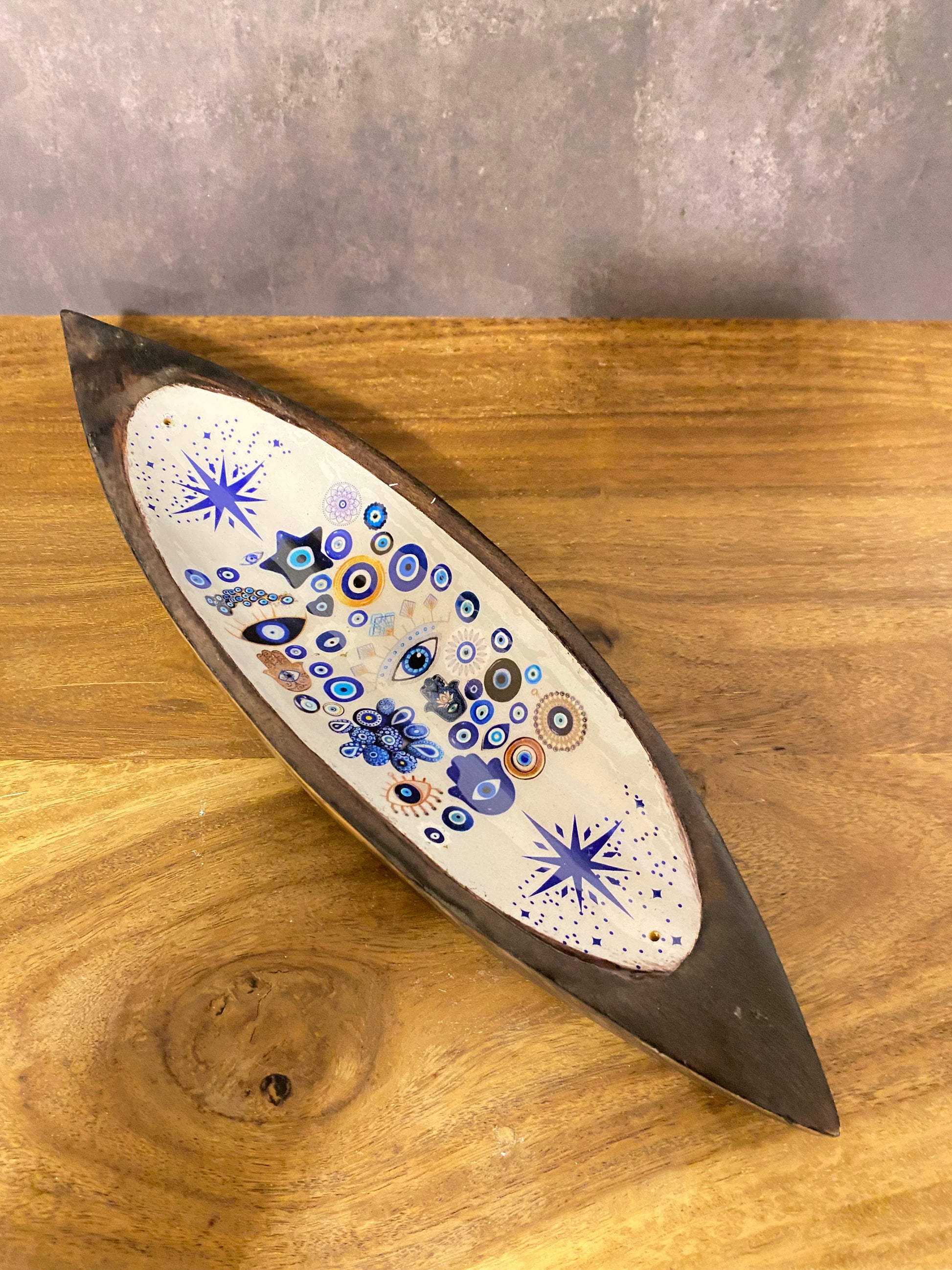 Diese kunstvoll gestaltete Schale in Bootform ist nicht nur ein wunderschönes Deko-Element, sondern auch ein kraftvolles spirituelles Symbol.
