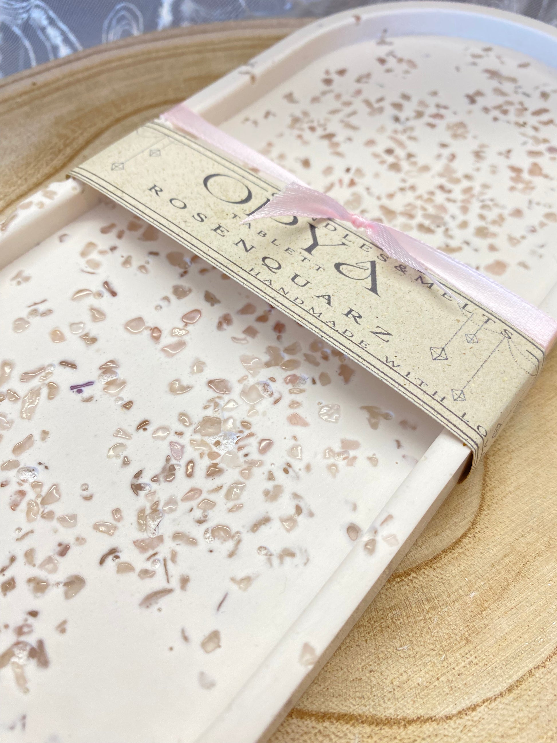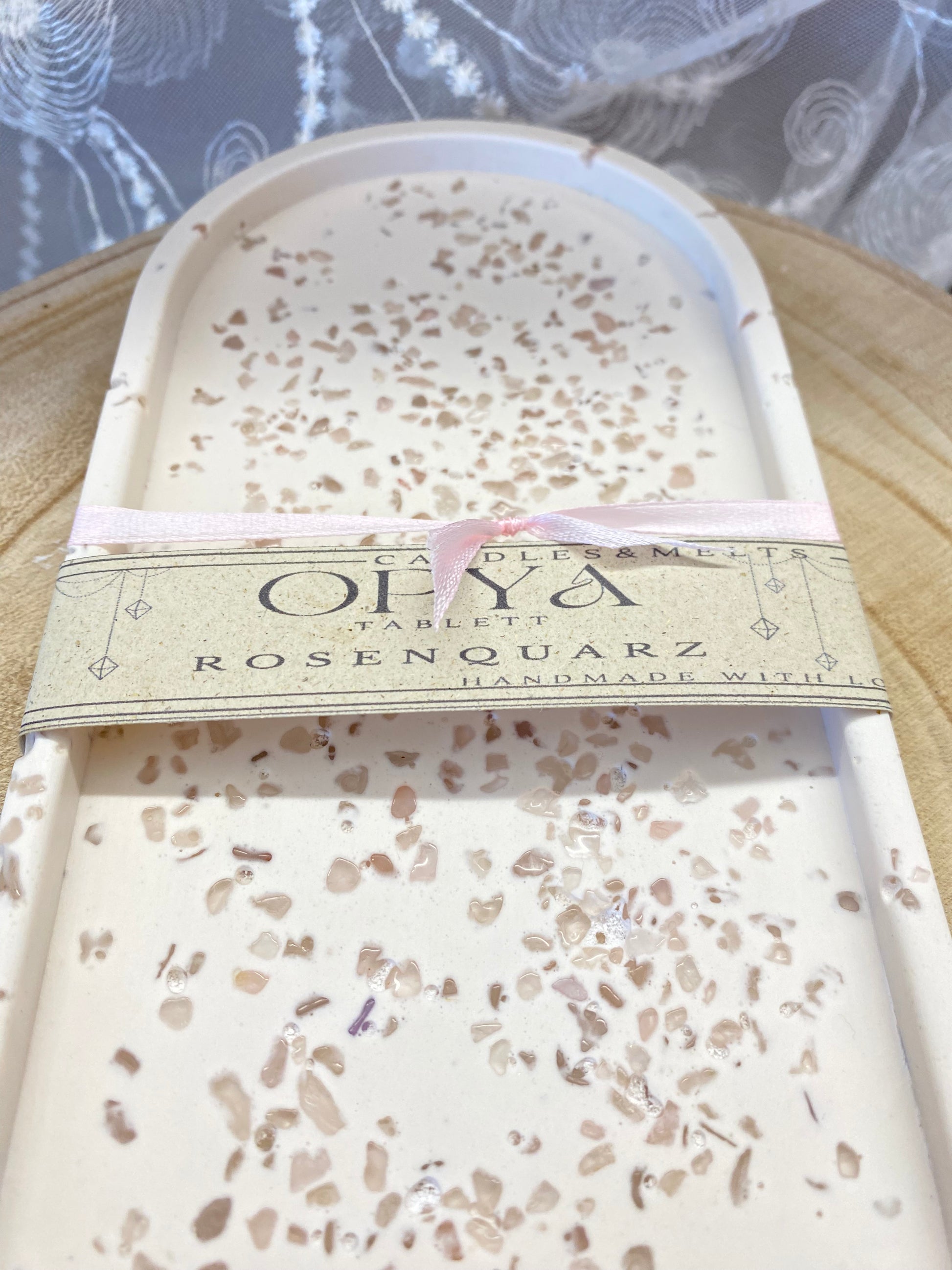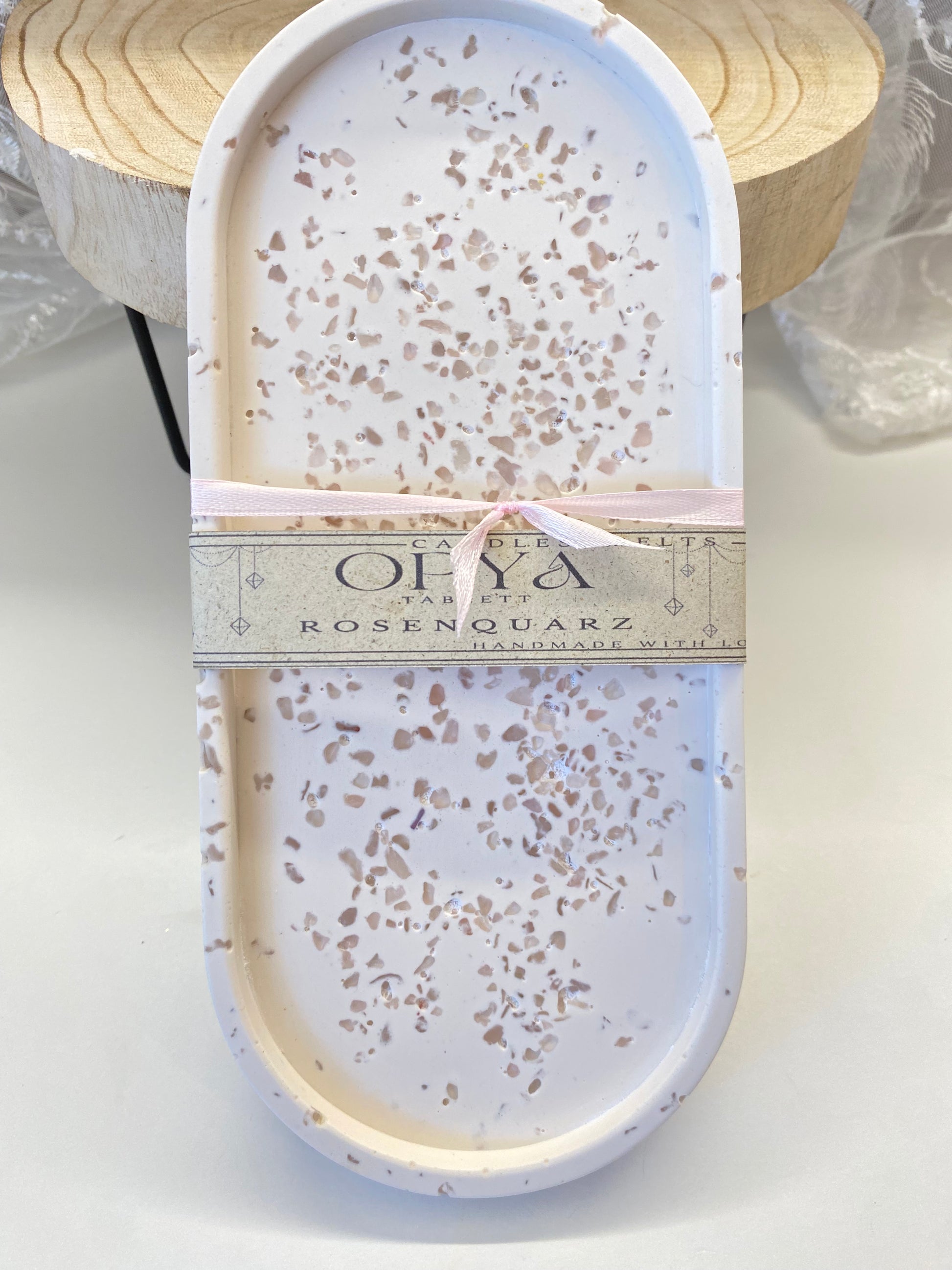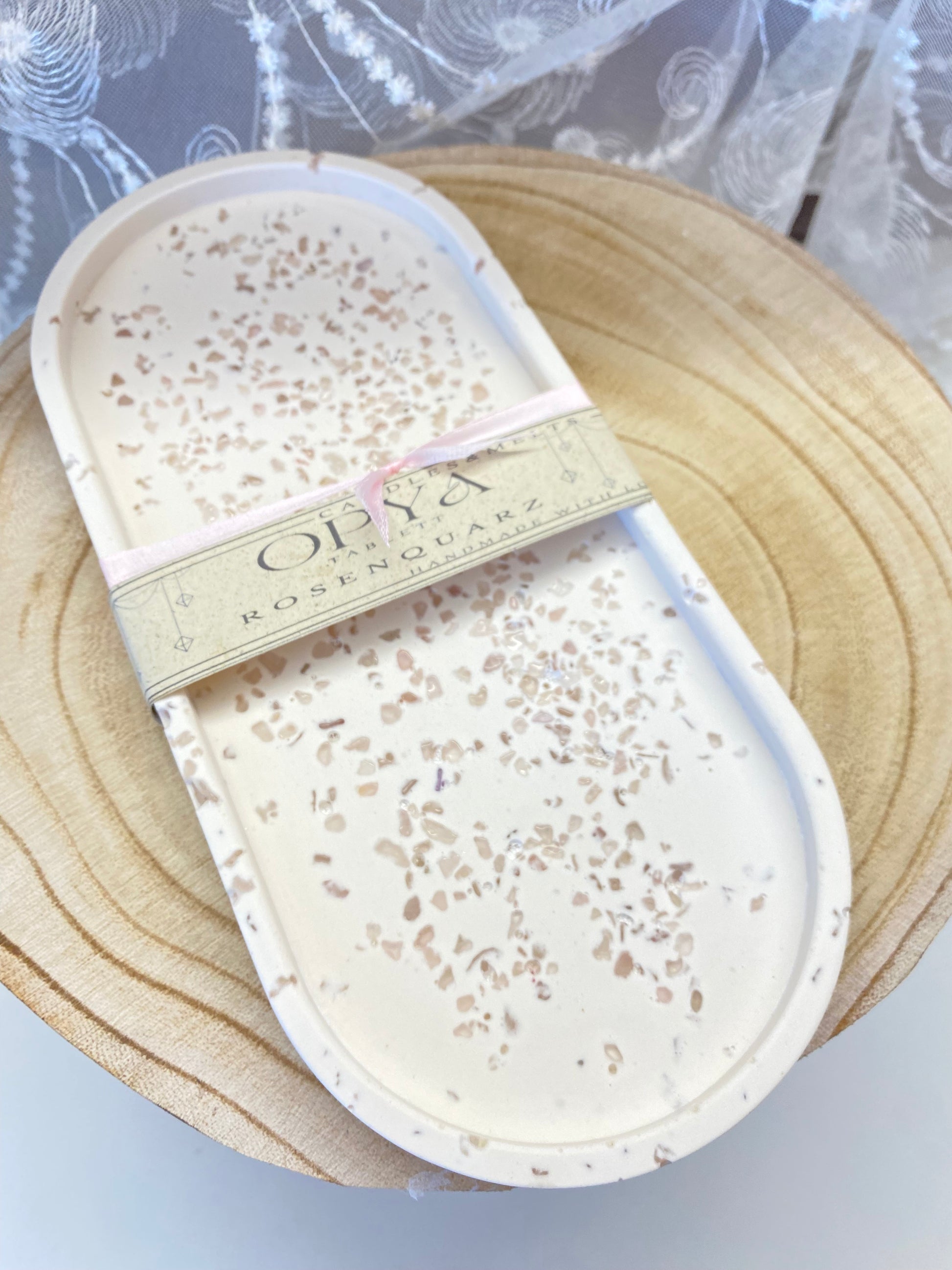 Ritual Tablett mit Rosenquarz | Dekoration & Schmuckablage - Handmade