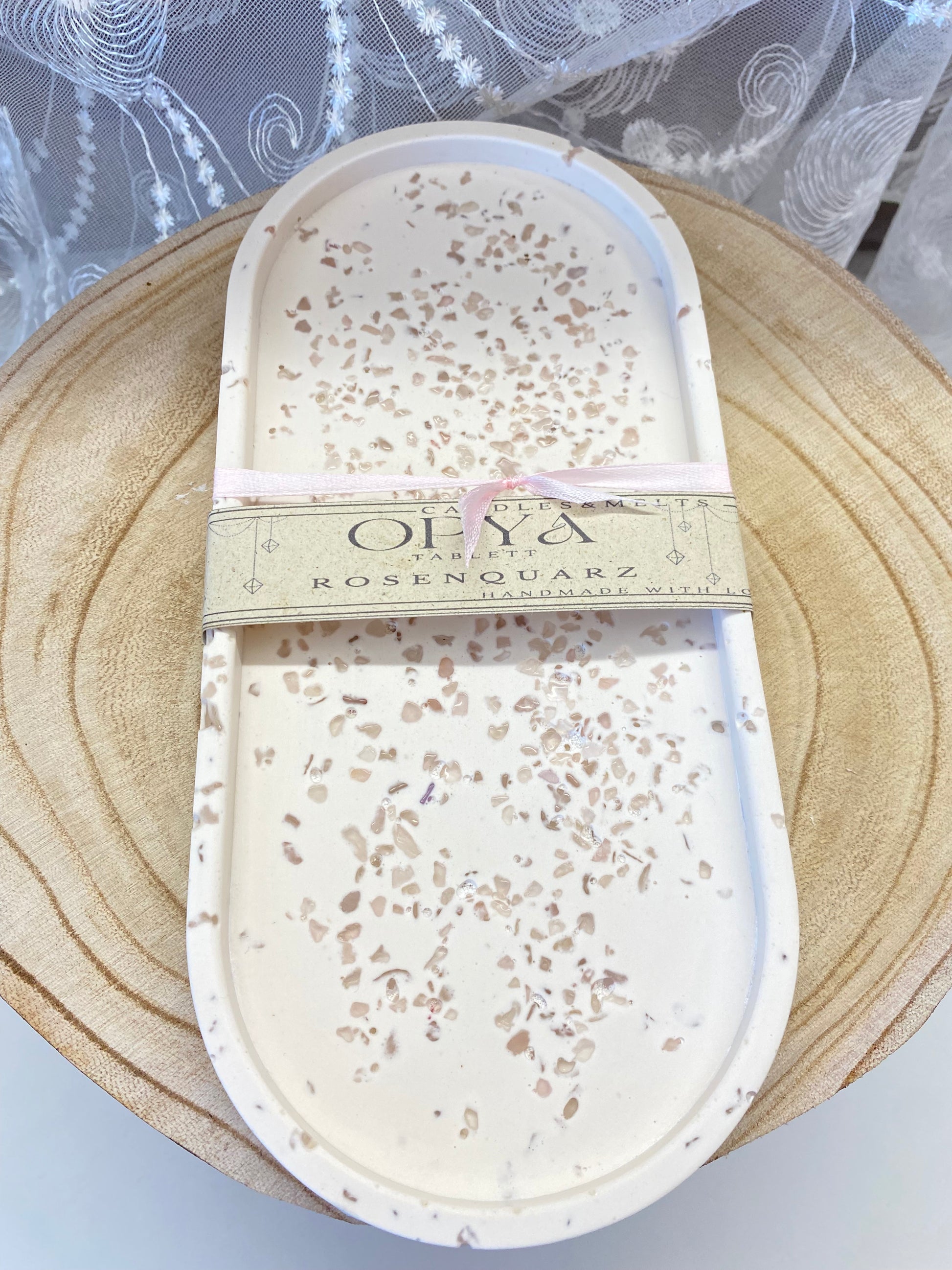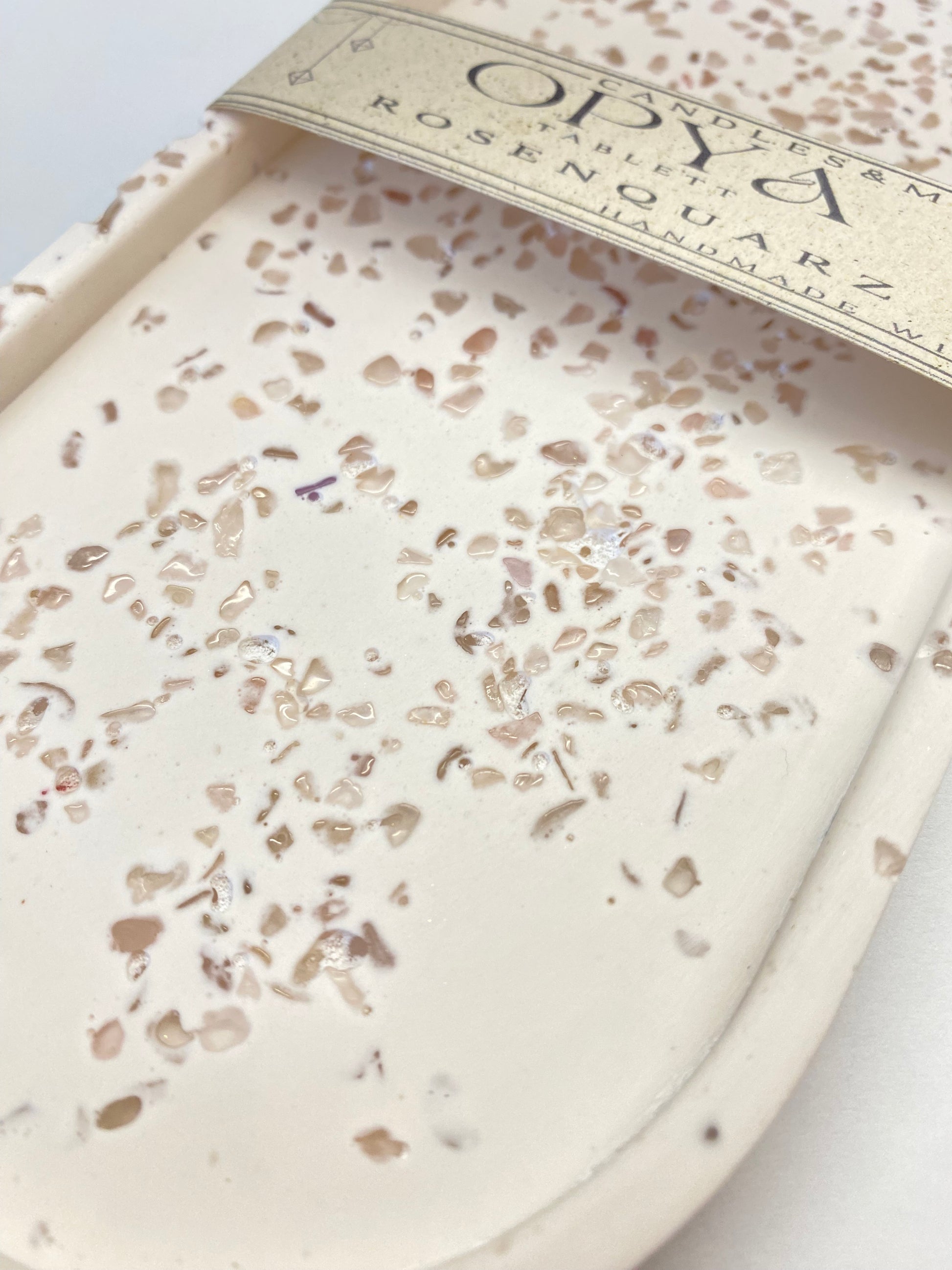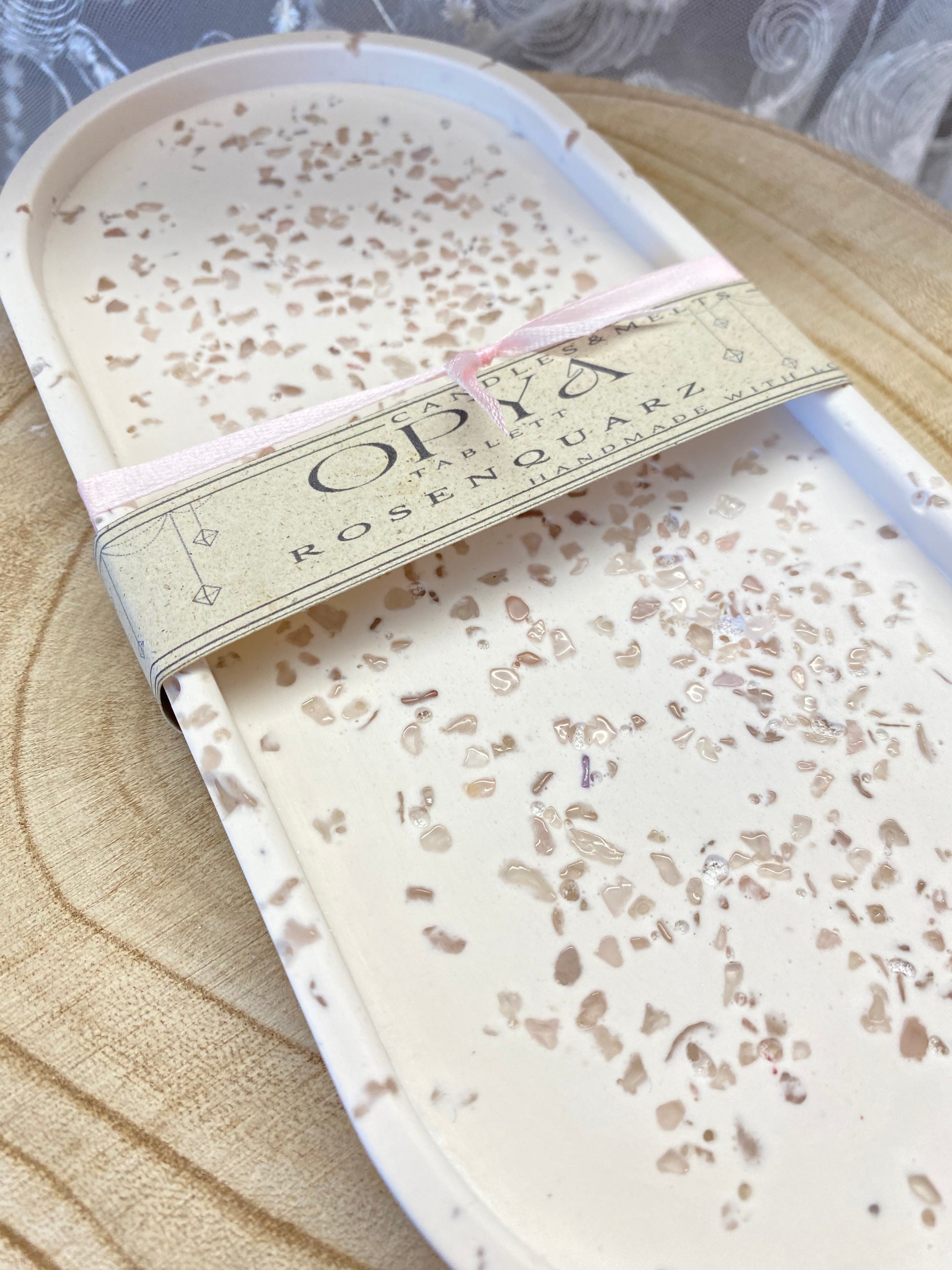 Ritual Tablett mit Rosenquarz | Dekoration & Schmuckablage - Handmade