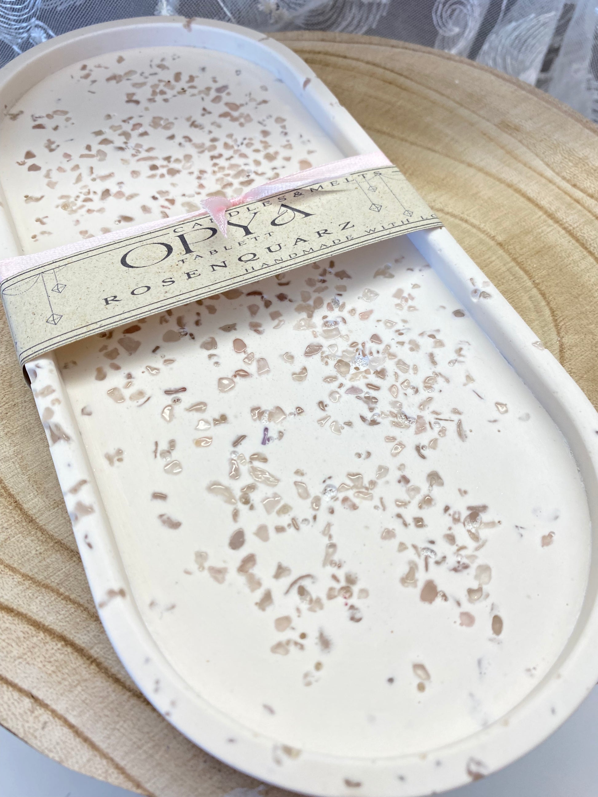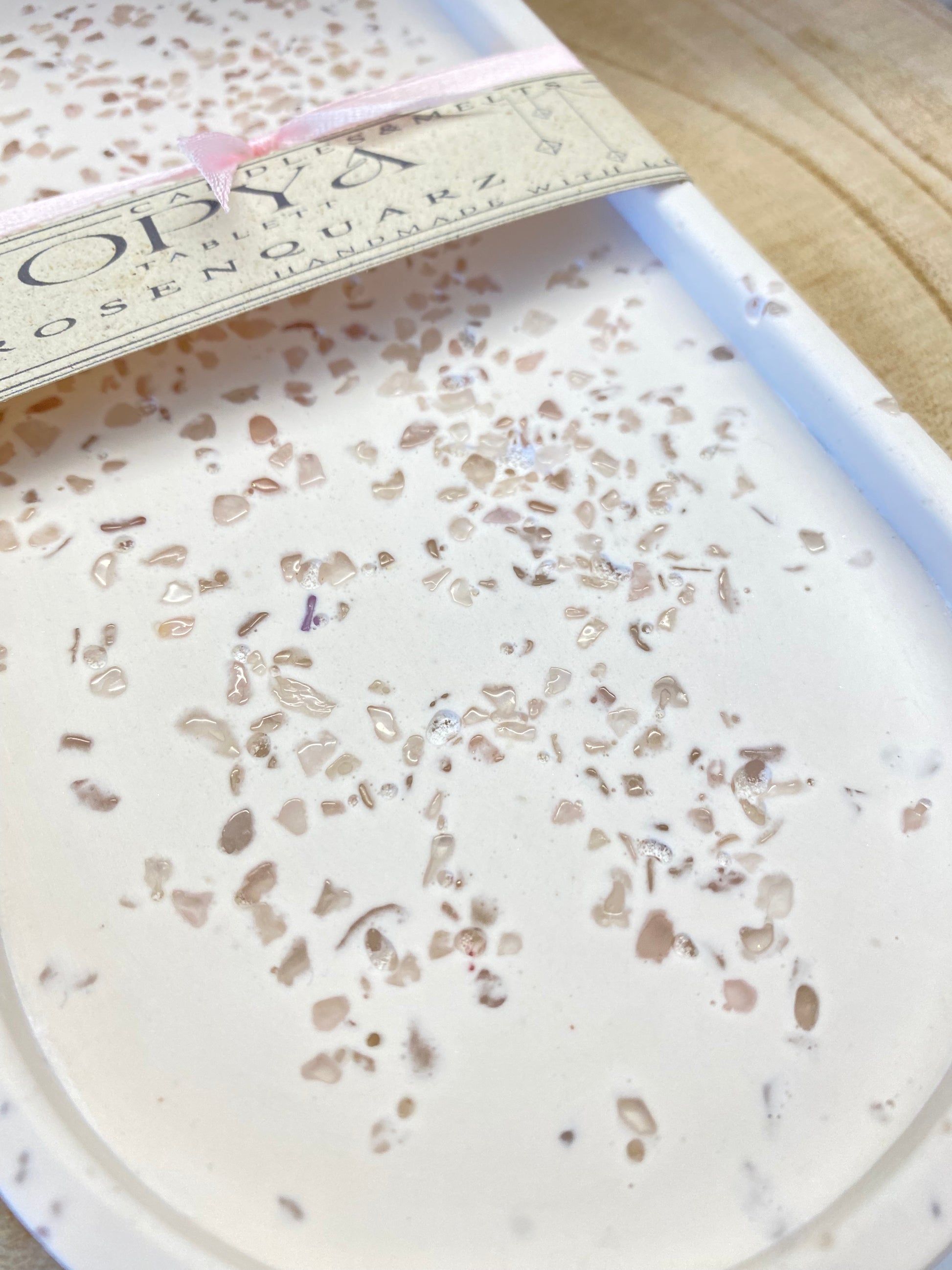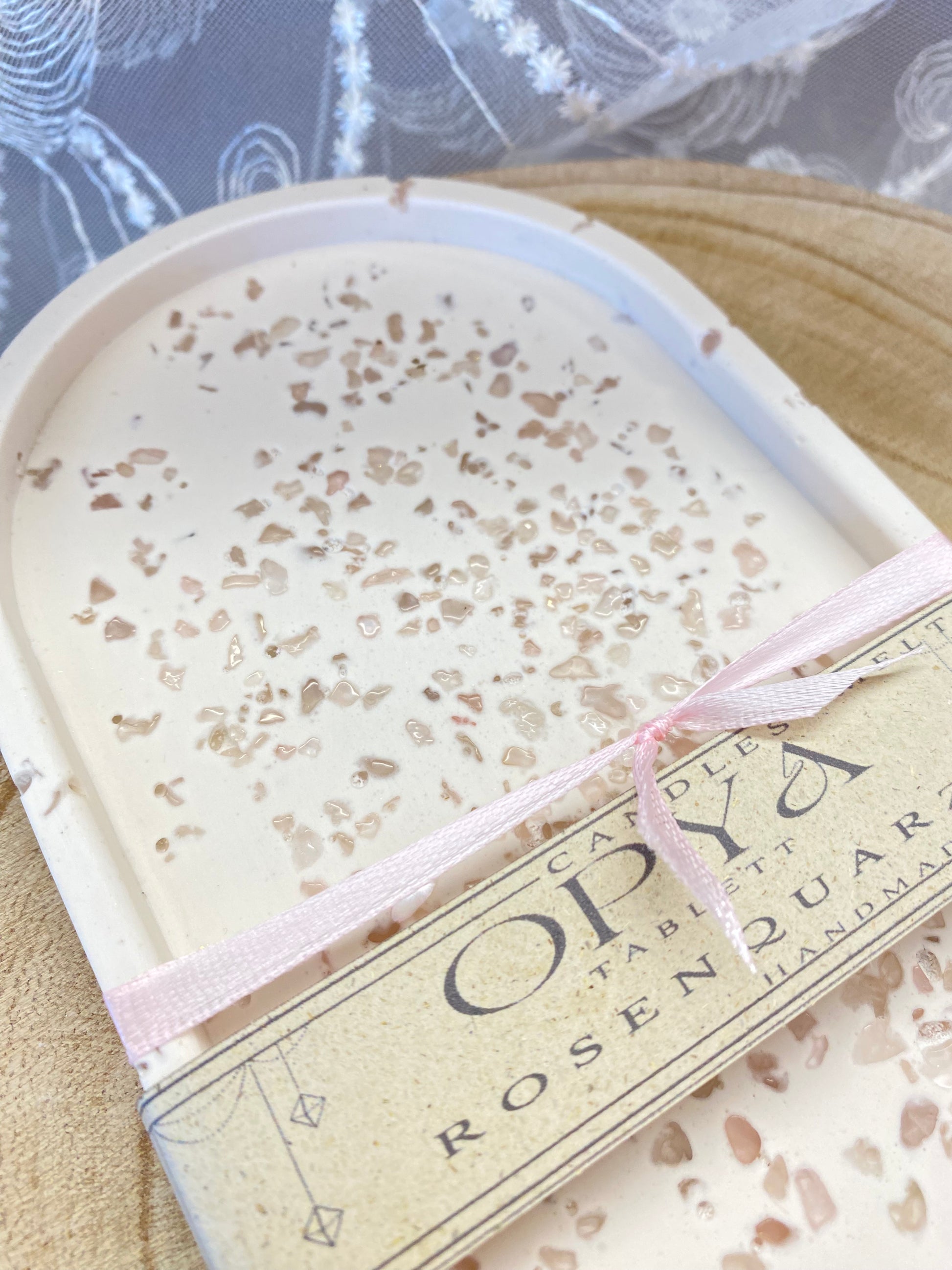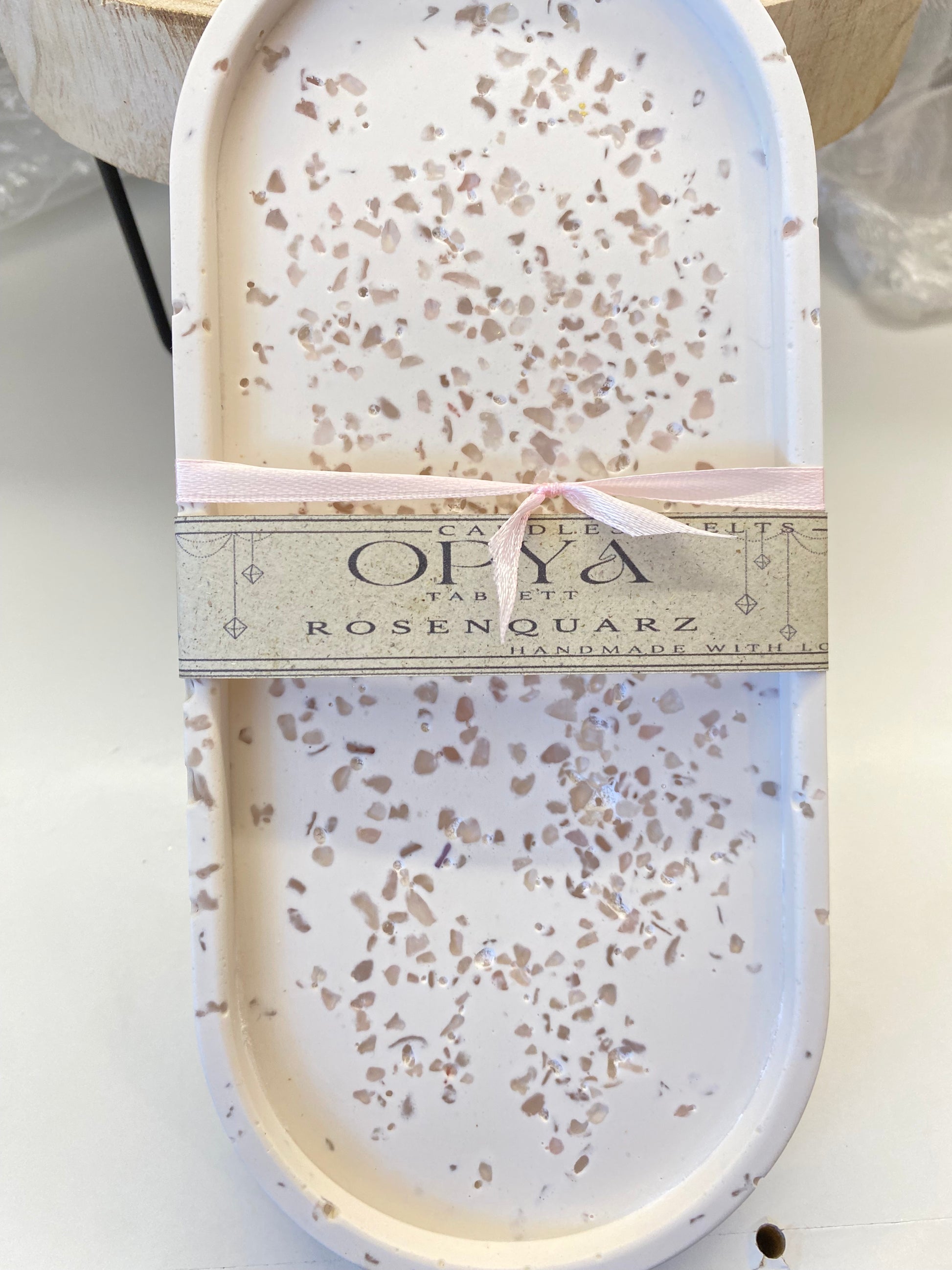 Ritual Tablett mit Rosenquarz | Dekoration & Schmuckablage - Handmade